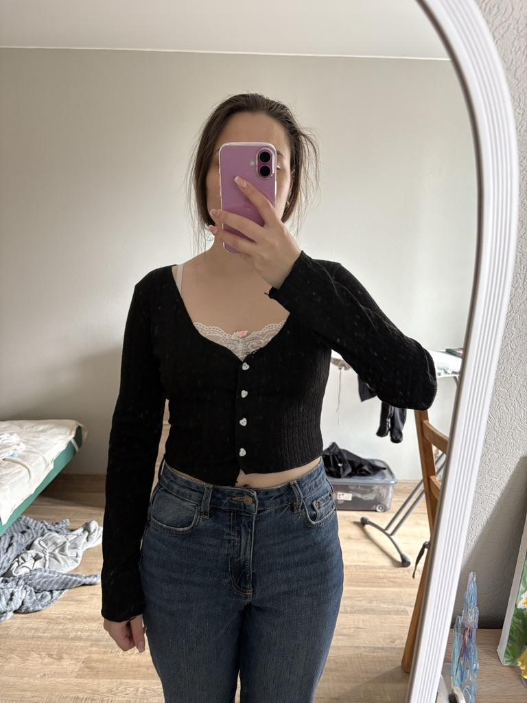 Топ сшит очень криво (видно по пуговицам), повсюду торчат нитки. Ужас! Udp: после деликатной стирки еще и отлинял, и белая вставка перестала быть белой ☹️
