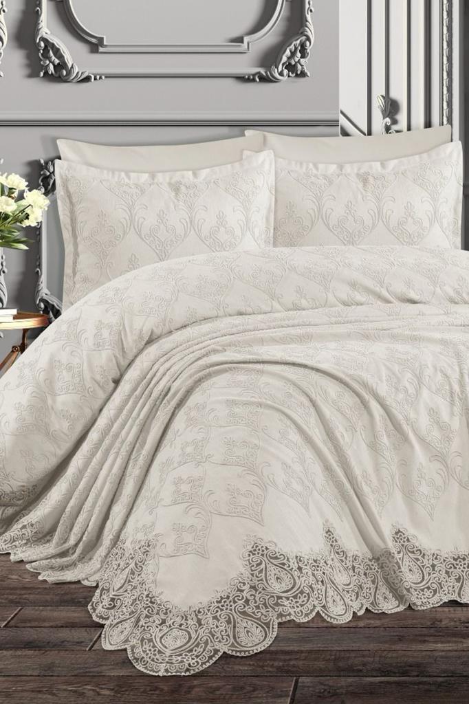 Комплект постельного белья Nilufer, Покрывало 230х240, Простыня 230х240, Ткань шенилл, Полный размер, Полноценная кровать, Кремовый — купить товар онлайн с бесплатной доставкой по всему миру!