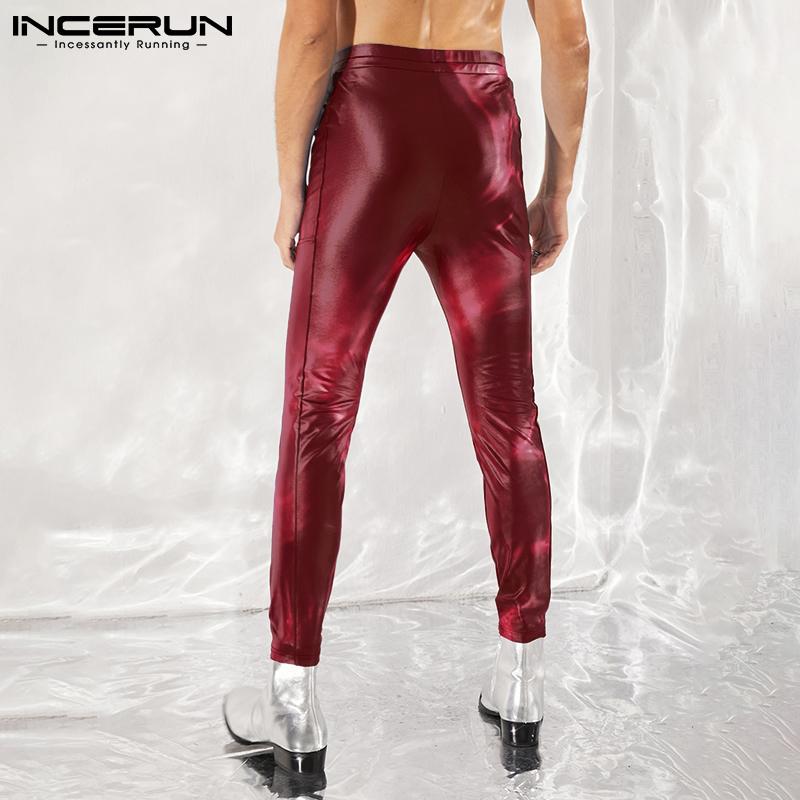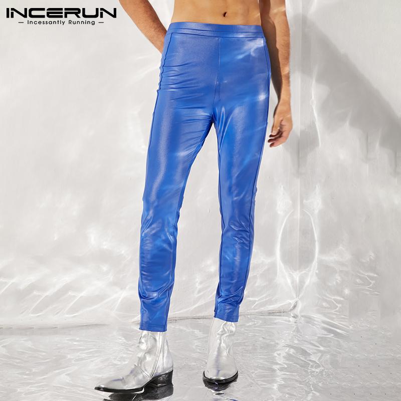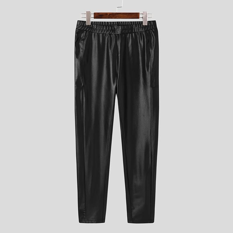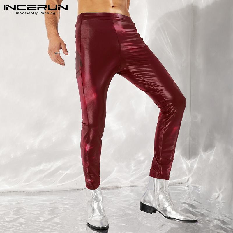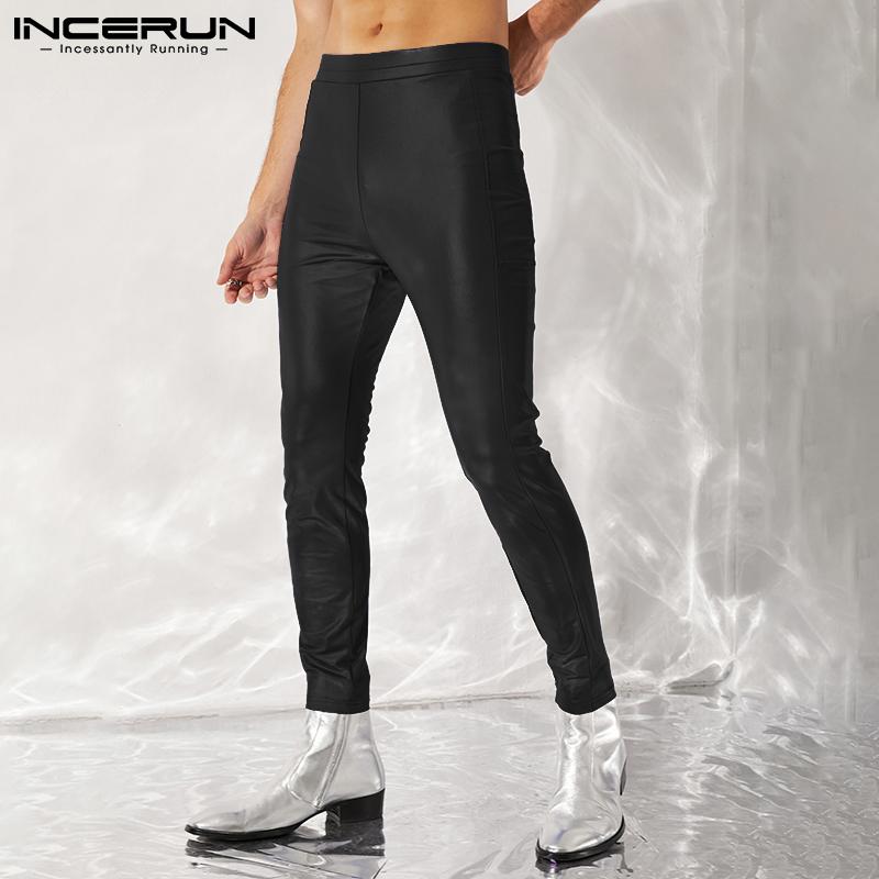 INCERUN осенне-зимние мужские кожаные тонкие эластичные леггинсы макси-брюки
