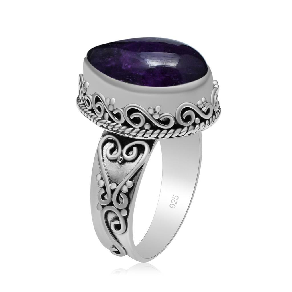 Серебряное кольцо с драгоценным камнем ручной работы из аметиста