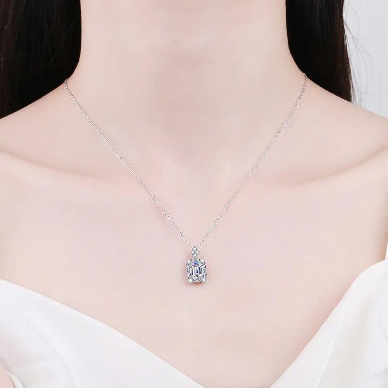 Новый настоящий квадратный кулон из муассанита, ожерелье 1 карат, изумрудная сияющая огранка, стерлинговое серебро 925 пробы, цепочка на ключицу, ювелирные изделия для женщин