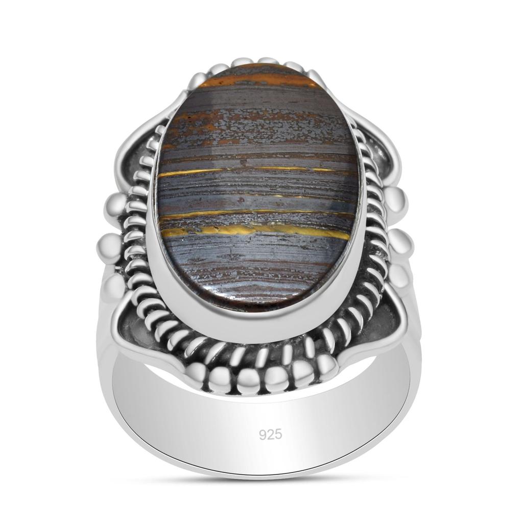 Серебряное кольцо ручной работы с железным тигровым глазом и драгоценным камнем