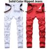 Мужские повседневные эластичные брюки с большими дырками, узкие джинсы, мужские белые, красные, черные брюки с несколькими отверстиями