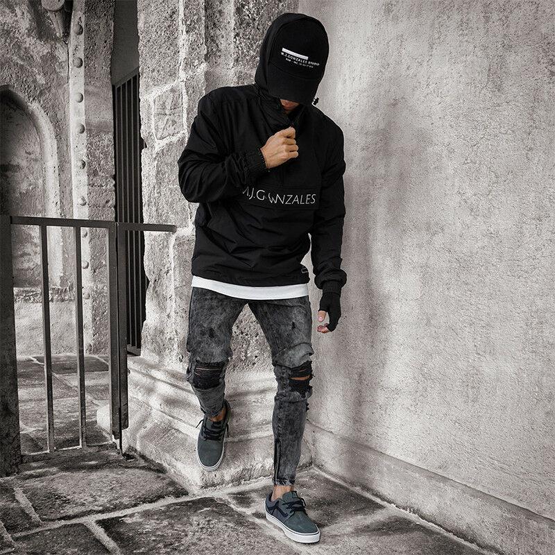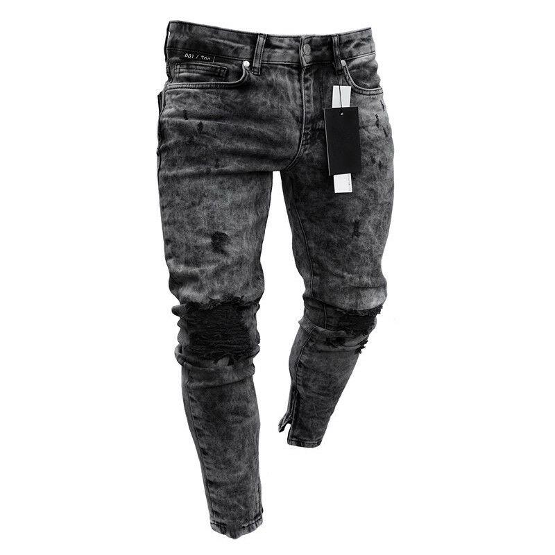 Мужские джинсовые байкерские узкие рваные джинсы, длинные брюки, повседневные эластичные облегающие брюки