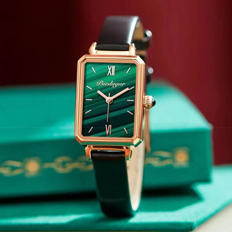 Женские часы, модные зеленые квадратные кожаные кварцевые часы, лучший бренд, роскошные водонепроницаемые женские наручные часы для подруги