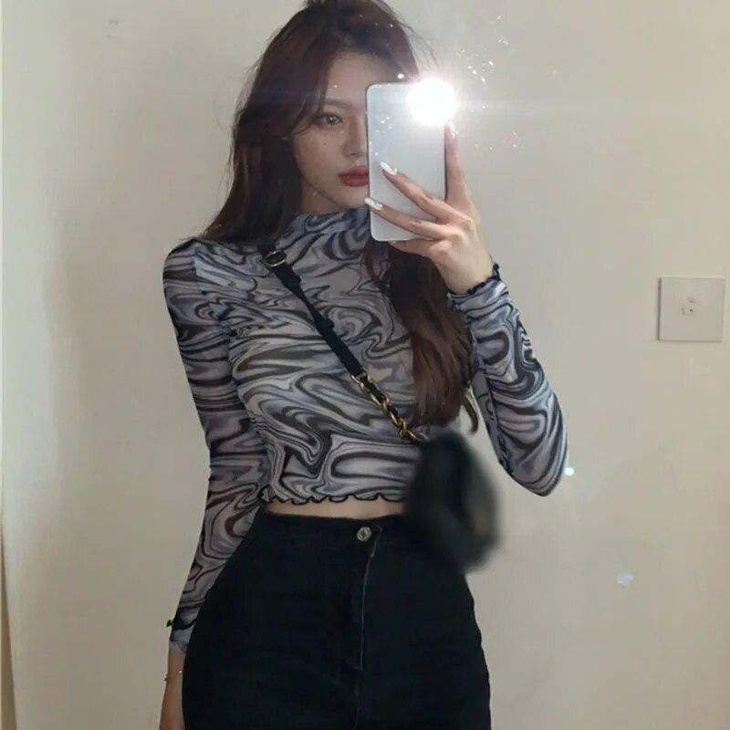 Характеристики: сексуальный, женский, ранняя осень, самообновление, рубашка с нижним низом, длинные рукава, сетчатая марля, короткий стиль, верх, цветение