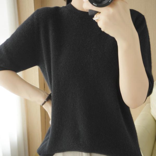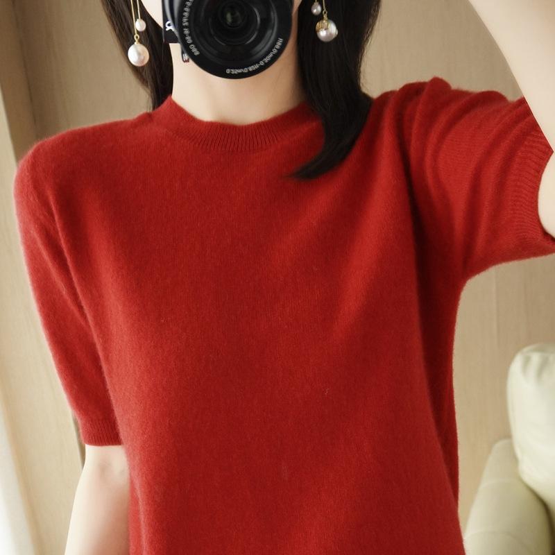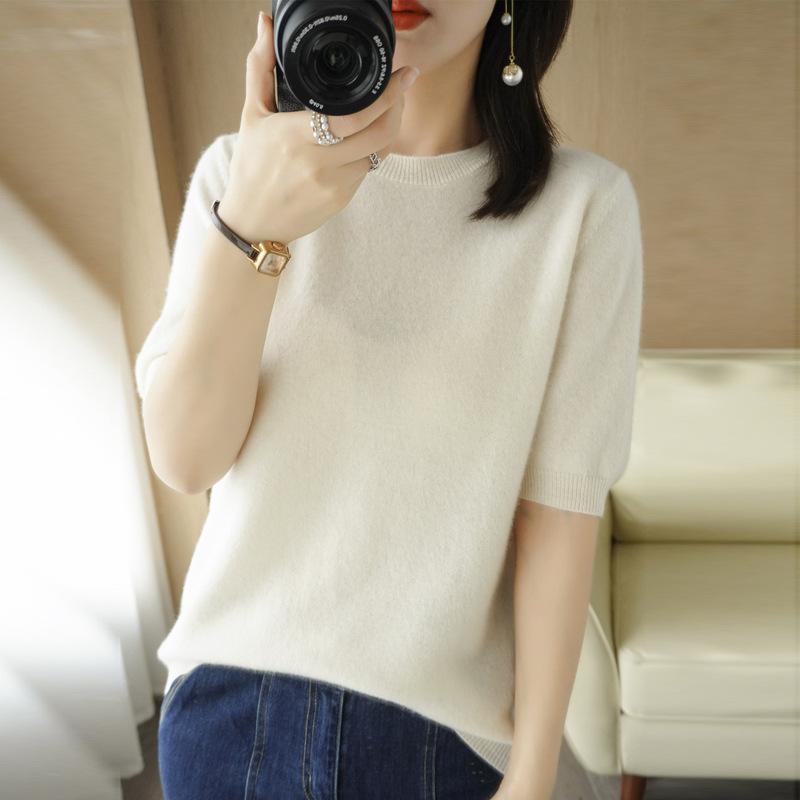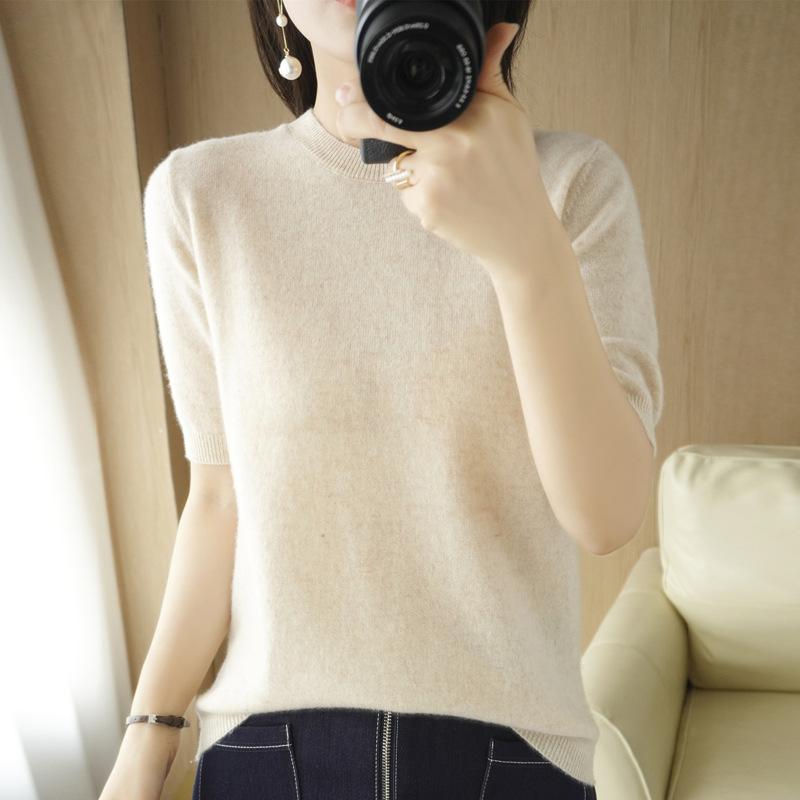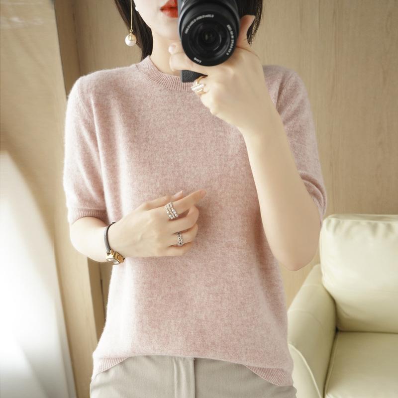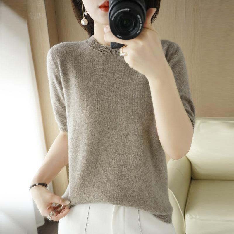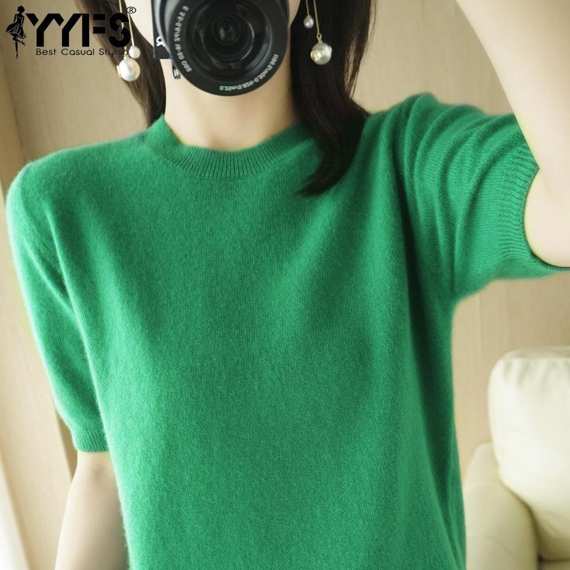 YYFS Женские модные повседневные однотонные пуловеры с круглым вырезом и осенне-зимним принтом с короткими рукавами