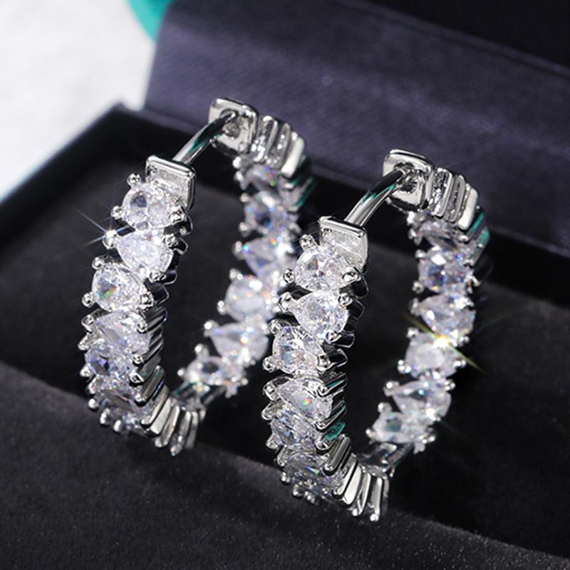 POMOiii Высококачественные серьги серебристого/золотого цвета, женские серьги-кольца для свадебной вечеринки, универсальные роскошные ювелирные изделия с цирконием