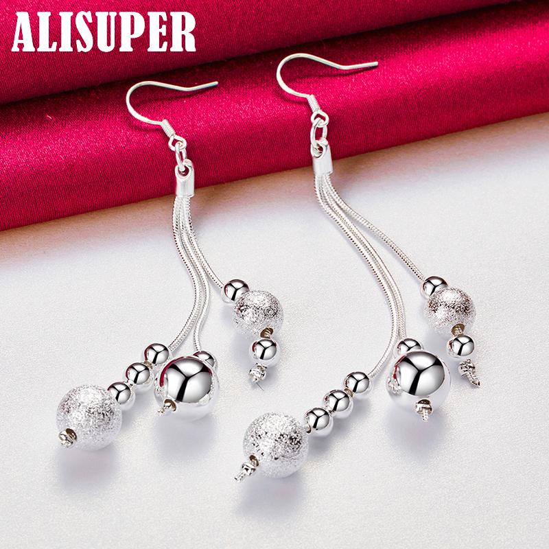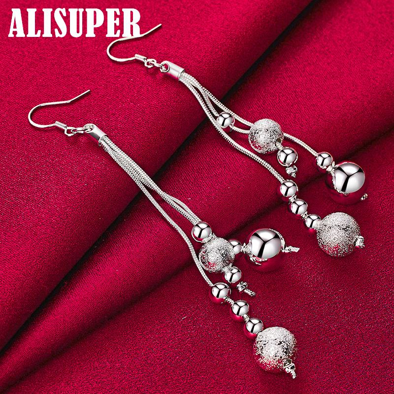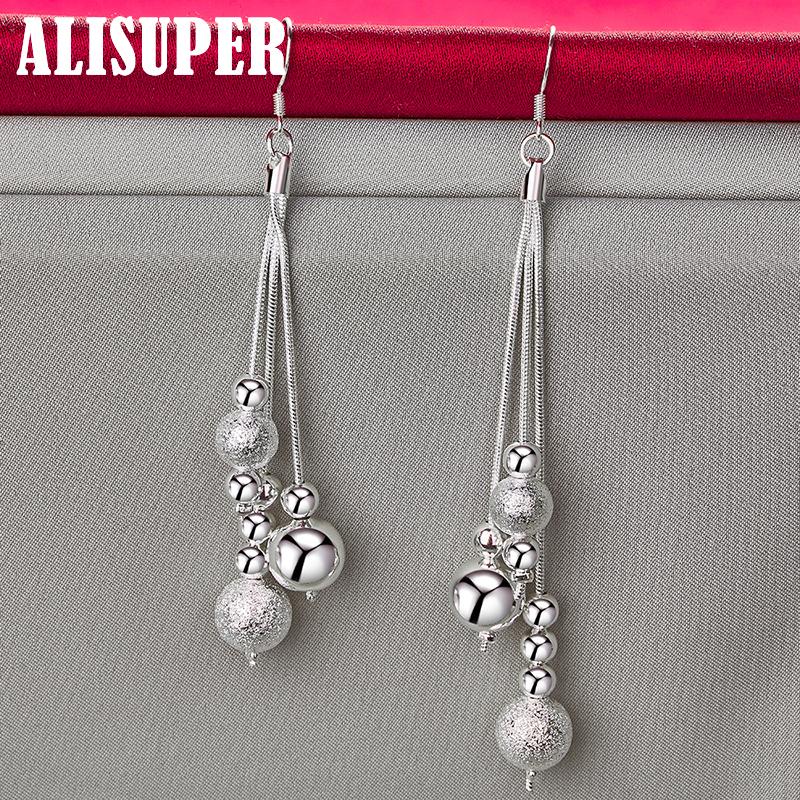 Ювелирные изделия из стерлингового серебра 925 пробы с гладкими матовыми бусинами-серьгами-капельками