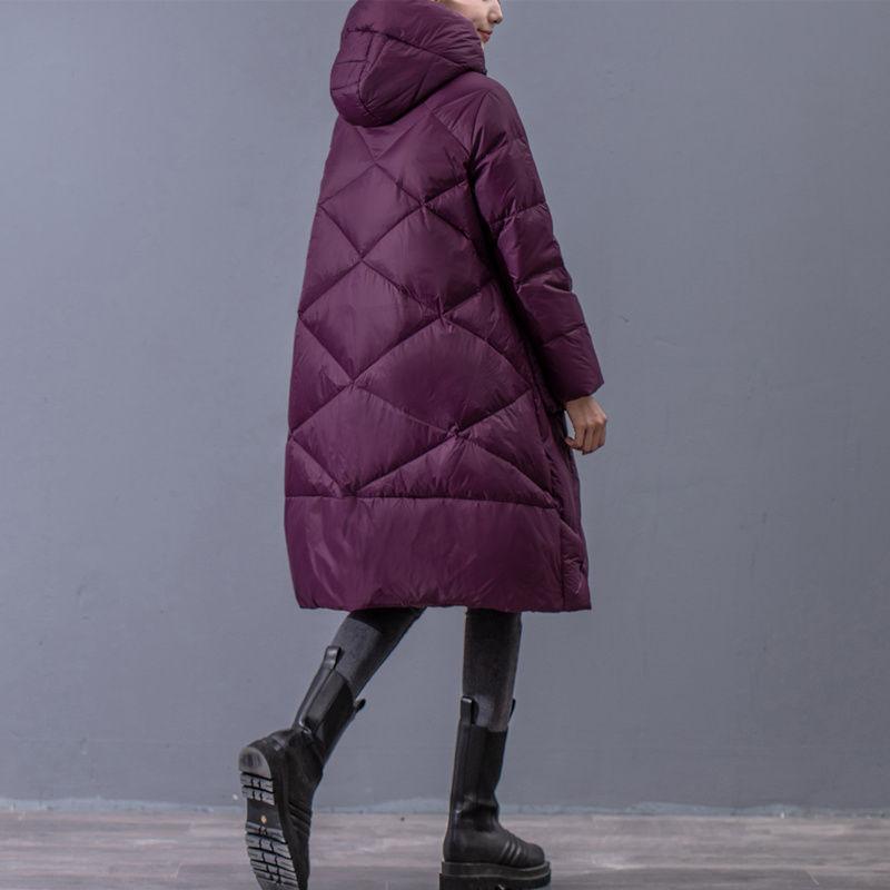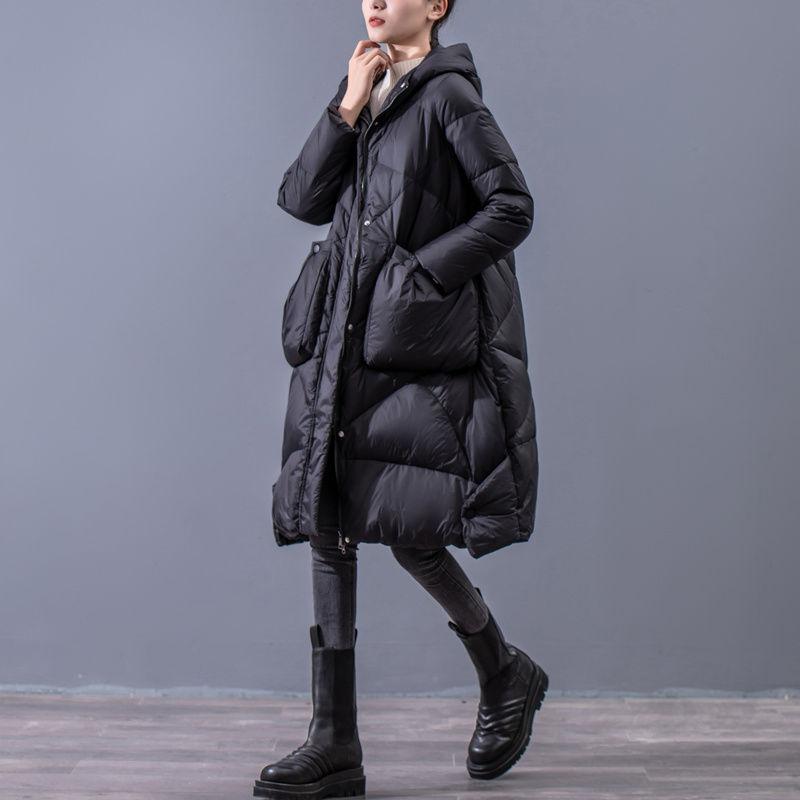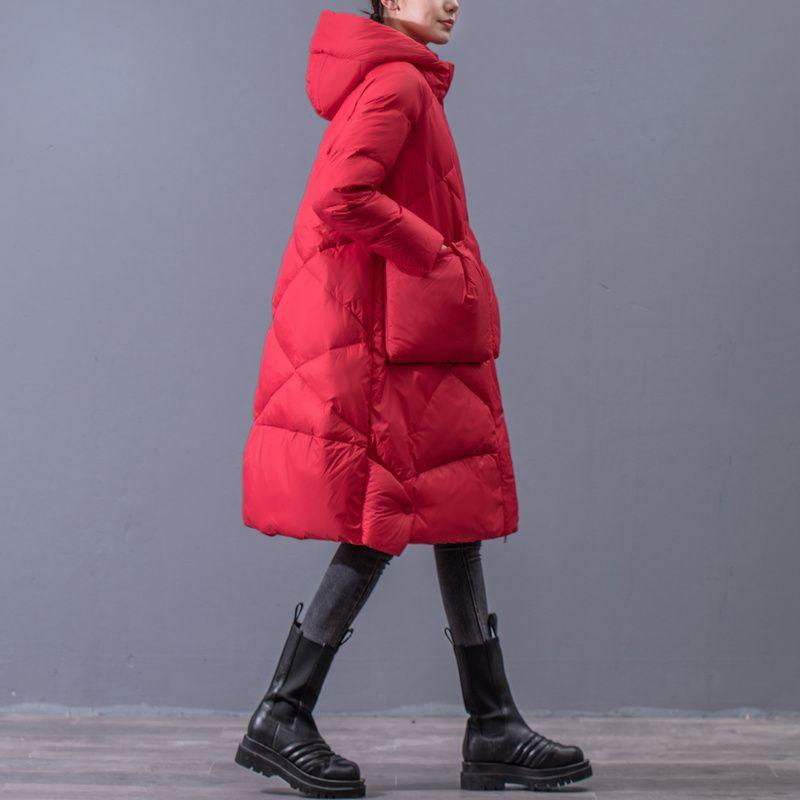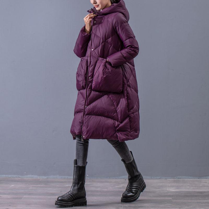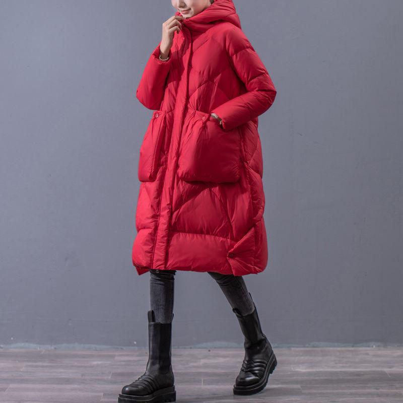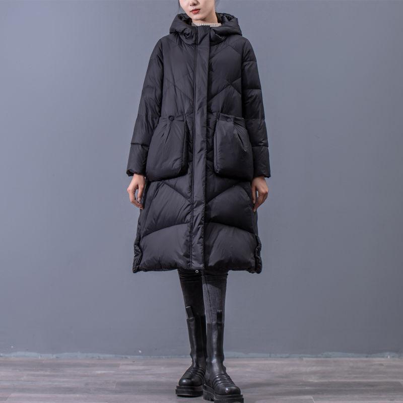 Утолщенное зимнее пальто на белом утином пуху для женщин, винтажное теплое пальто средней длины больших размеров