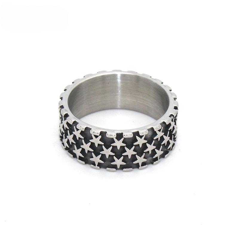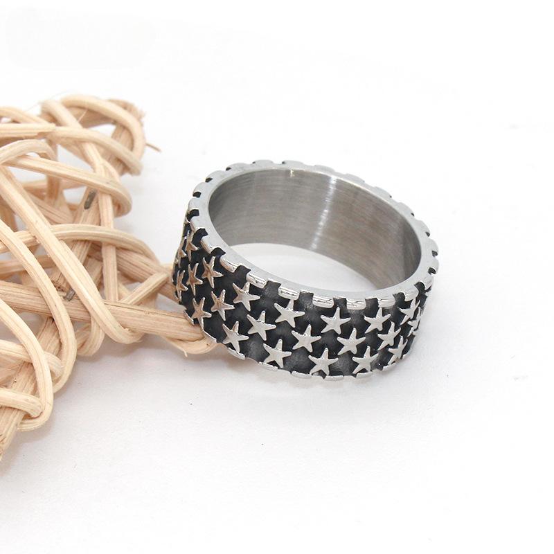 Мужское кольцо полного круга в стиле ретро, маленькое кольцо из титановой стали с пятиконечной звездой, модное мужское кольцо в стиле ретро из нержавеющей стали