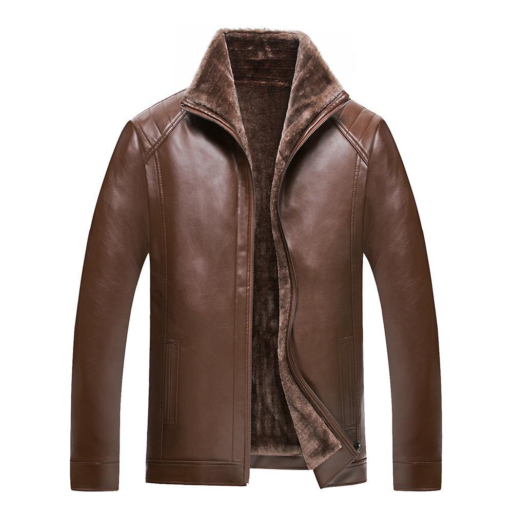 Мужская меховая куртка Fuax с воротником-стойкой большого размера, зимняя кожаная куртка, зимняя теплая верхняя одежда