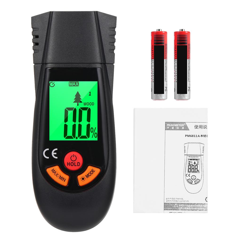 Этот прибор представляет собой стабильный, надежный и безопасный тестер влажности древесины, использующий высокопроизводительный микроконтроллер в качестве ядра измерения и контроля, быстрый отклик измерений, высокую точность, низкое энергопотребление.; с 4 видами пород деревьев, а также бумажными пакетами, строительными стенами, 6 режимами измерения влажности.
