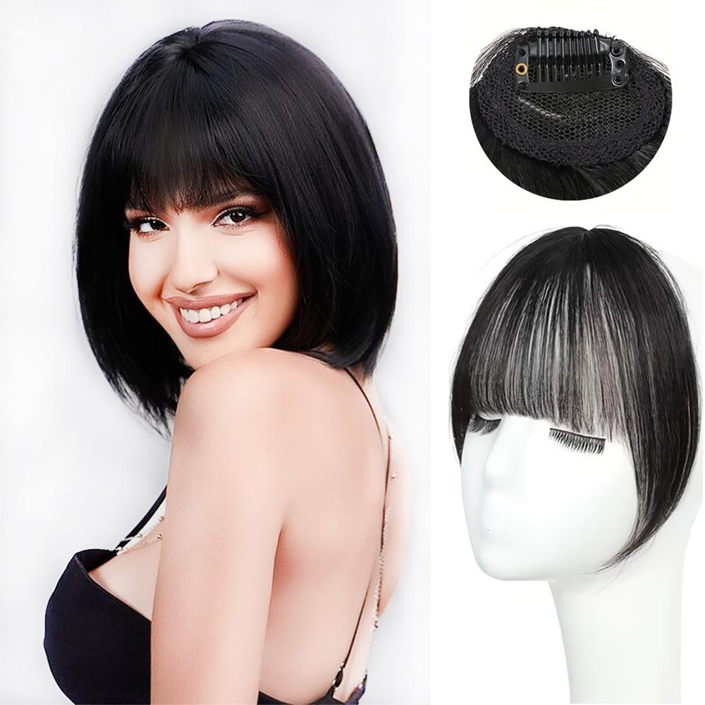MERISIHAIR Синтетические волосы, цельный прямой зажим для наращивания волос, плоская челка с воздушной челкой спереди и париком для женщин, повседневное использование