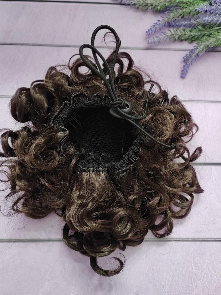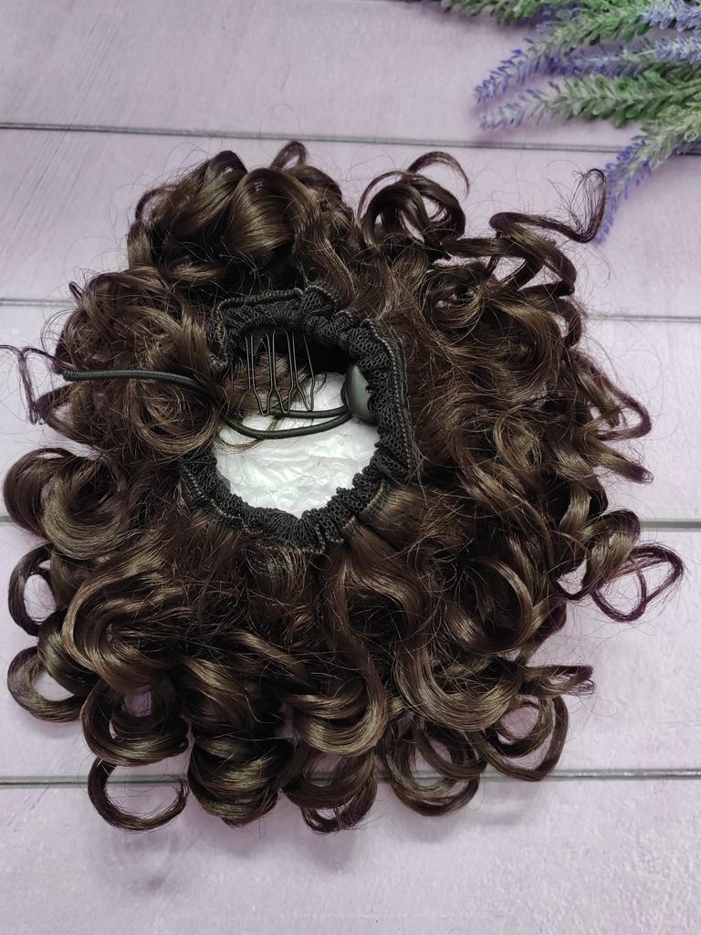 Пучок - шиньон с красивыми кудряшками Шиньон крепится к волосам при помощи четырёх гребешков и затягивается резинкой - фиксатором. Для надёжности я закрепляю ещё невидимки, держится хорошо. Шиньон очень красиво смотрится, лёгкий, волосы не тянет. Качество шиньона прекрасное, волосы не лезут при расчёсывании. Кукольного блеска нет, волосы, как настоящие. Соответствует промо - фото продавца. У меня в оттенке #4. Оттенок хорошо подошёл к моему цвету волос. Продавца и магазин рекомендую. Всем удачных покупок! Спасибо продавцу! Спасибо Джум! Благодарю за подписку и лайки ❤️