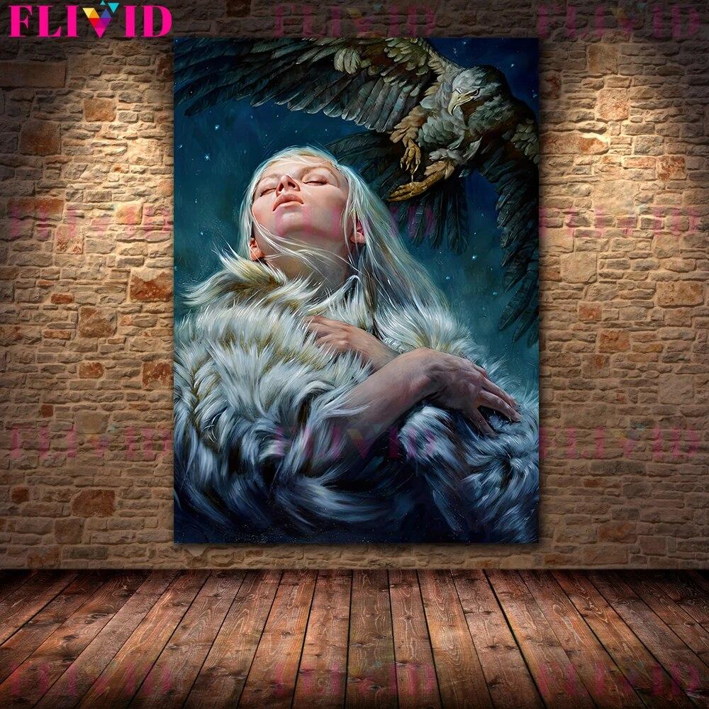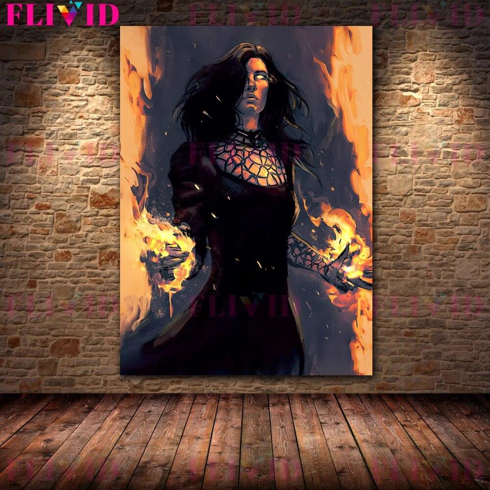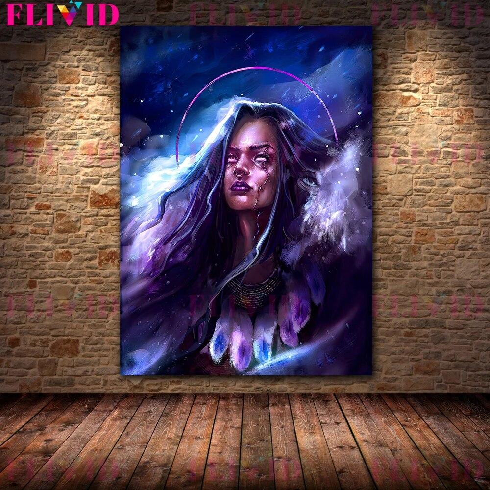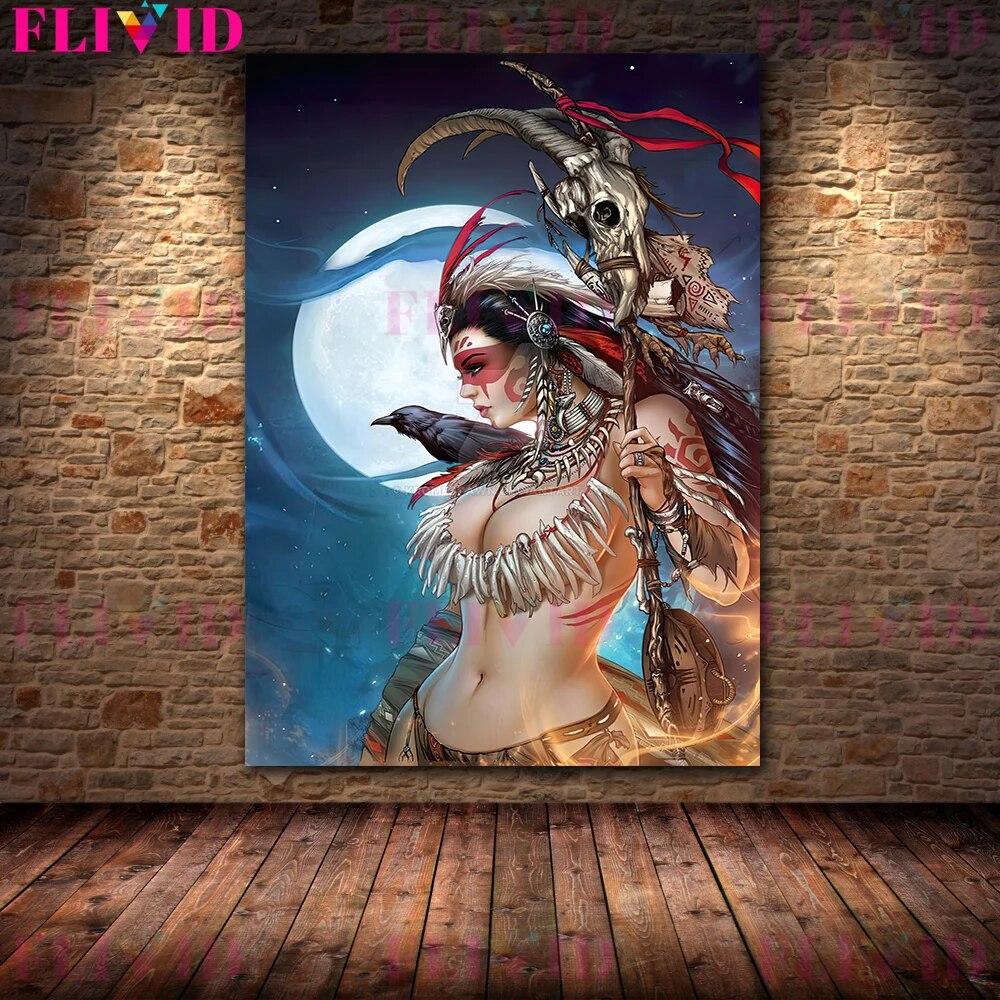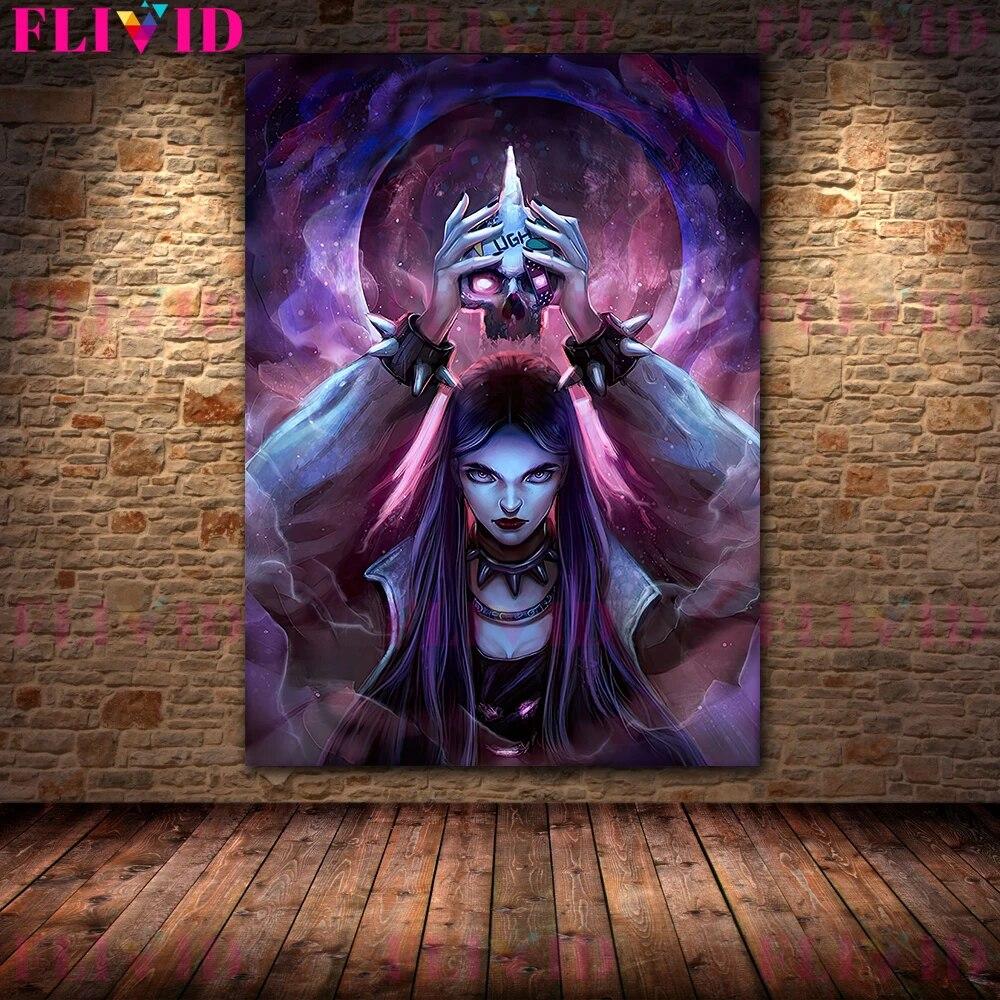 Лунная ведьма панк-богиня винтажная настенная живопись на холсте шаман священник и пламенная ведьма художественный постер и принт домашний декор без рамки