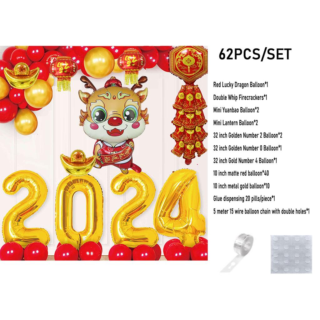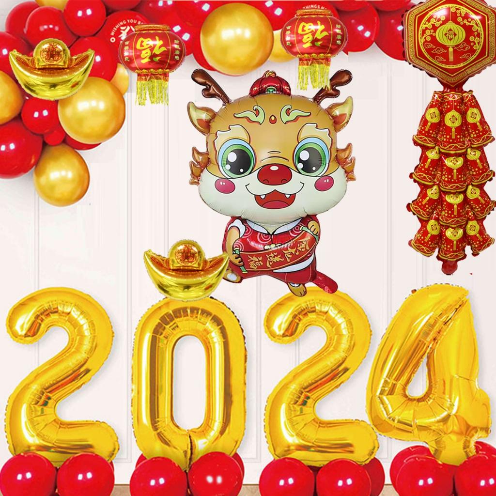 2024 Китайский Дракон Новогоднее украшение из воздушных шаров Красные фонарики Счастливые фигурки животных Дракон Воздушный шар Орнамент Праздничное украшение для вечеринки