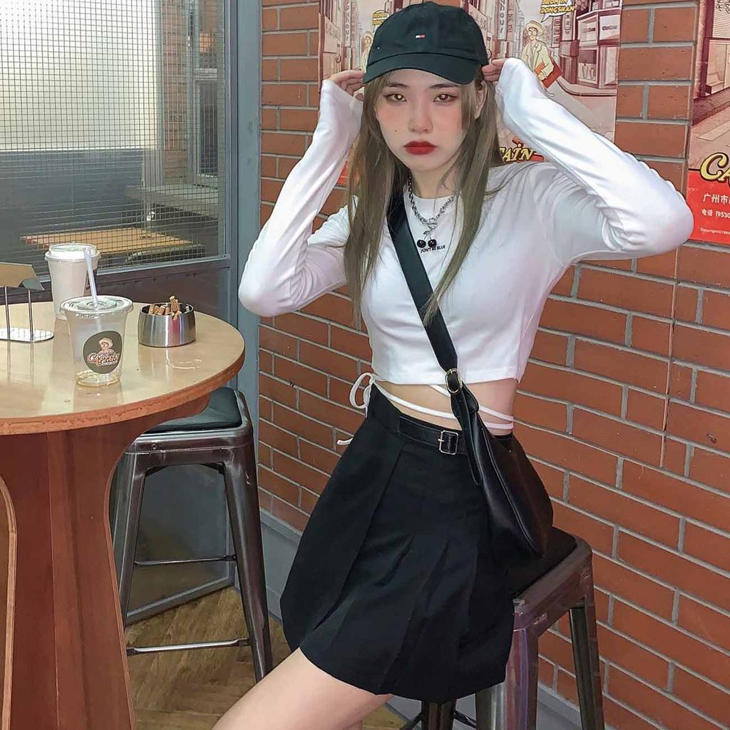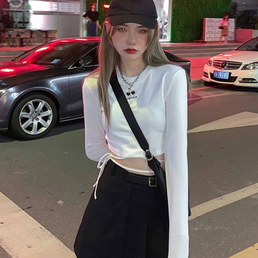 Футболки с длинным рукавом, женские дизайнерские сексуальные укороченные топы с повязками, Harajuku Ulzzang Street Spring, женские Ropa, популярные обтягивающие новые