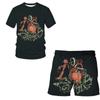 Взрослая европейская и американская серия, пляжная короткая одежда с 3D принтом, летний мужской женский костюм, футболка для мальчиков, шорты, комплект, повседневные топы из 2 предметов