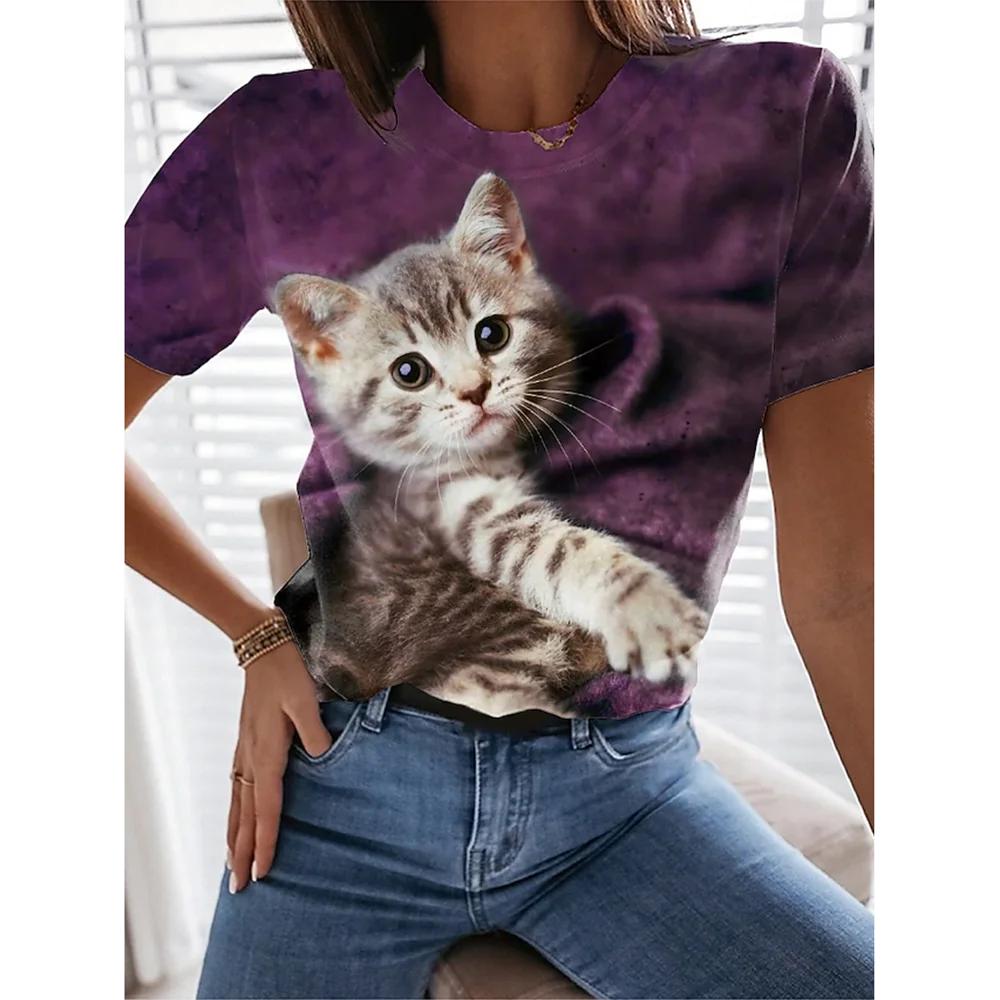 Женская футболка с 3d принтом собак и кошек, модные женские футболки, топы Y2k, Harujuku Kawaii, большой летний топ с круглым вырезом, женская одежда