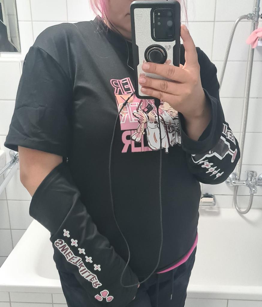 Дочке понравилась. Рисунок яркий, но долго не продержится, при частой стирке потрескается. Рукава идут отдельно, пришлось подшить к футболке на пару стежков с внутренней стороны-так интереснее смотрится.