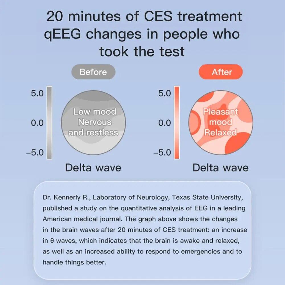 Микроток CES с научной точки зрения управляет сном. CES - это безопасный, неинвазивный, немедикаментозный метод облегчения тревоги, бессонницы и депрессии посредством мягкой электрической стимуляции мозга, также известной как «терапия транскраниальной микротоковой стимуляции».. Через пару электродов-клипс, закрепленных на ухе, специально разработанный микроток передается в центральную нервную систему мозга, чтобы стимулировать секрецию нервных клеток, что связано с бессонницей. Например, 5-гидрокситриптамин (5-НТ), γ-аминомасляная кислота (ГАМК, эндорфин (ЭНДОРФ), и т.д. регулировать аномальную мозговую деятельность и облегчать проблемы со сном физическими методами.