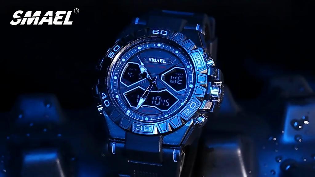 SMAEL Trend Индивидуальные функциональные часы Мужской студенческий сплав Двойной дисплей Водонепроницаемые светящиеся кварцевые часы