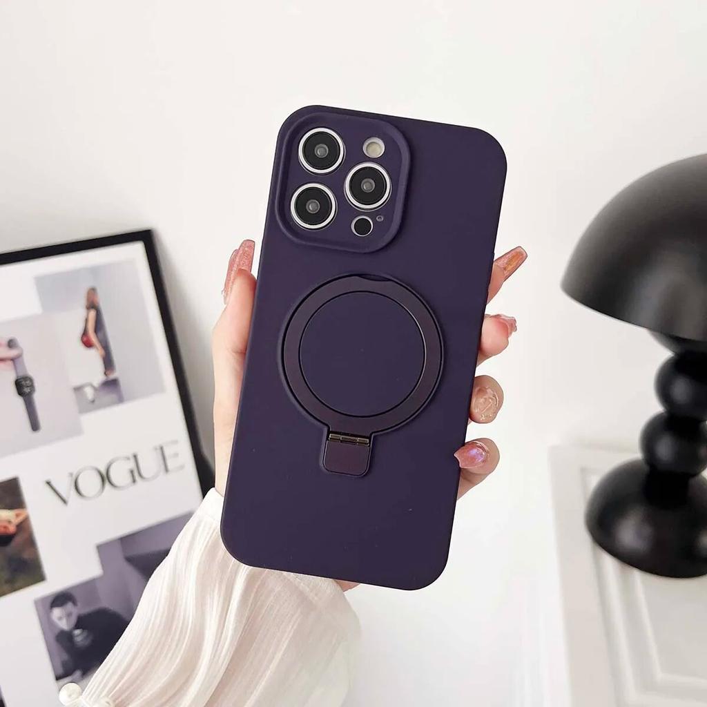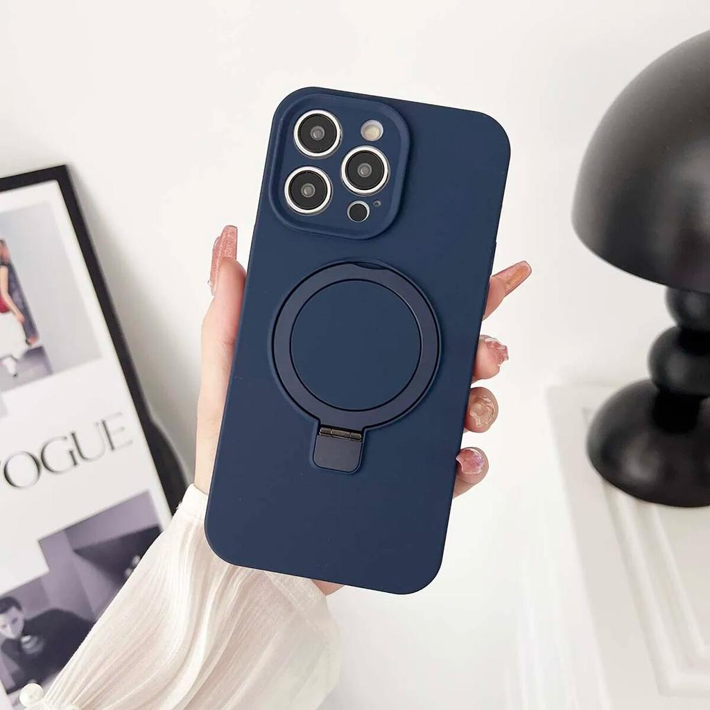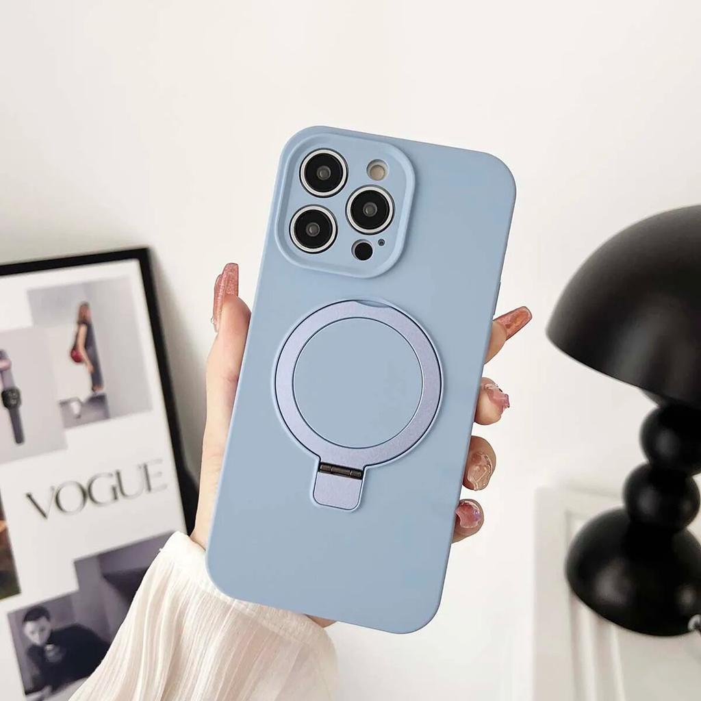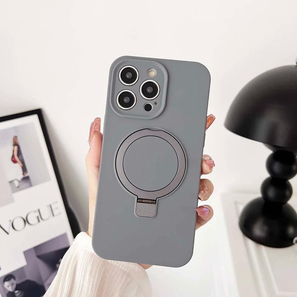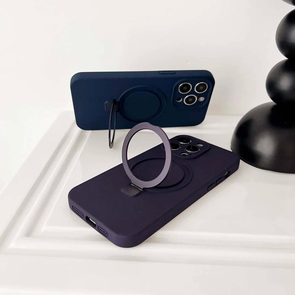 Жидкий силиконовый однотонный магнитный чехол для iPhone 14 13 12 11 Pro Max Plus, противоударный с кольцевым держателем, чехол Magsafe для телефона