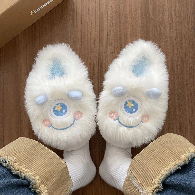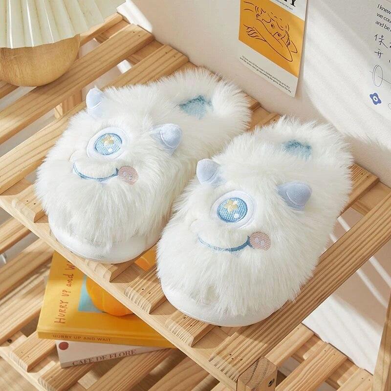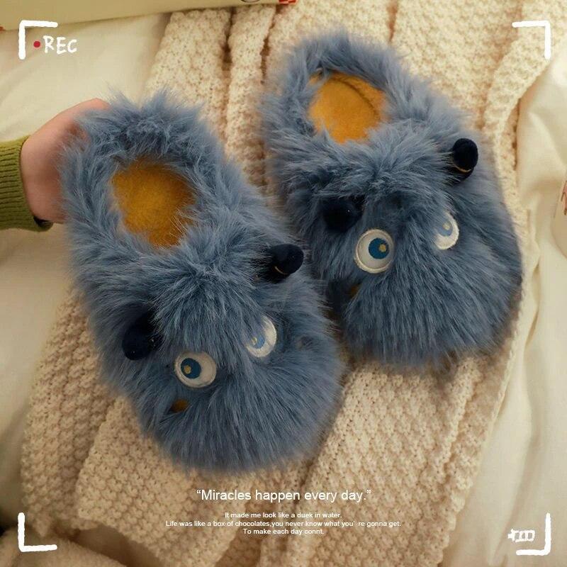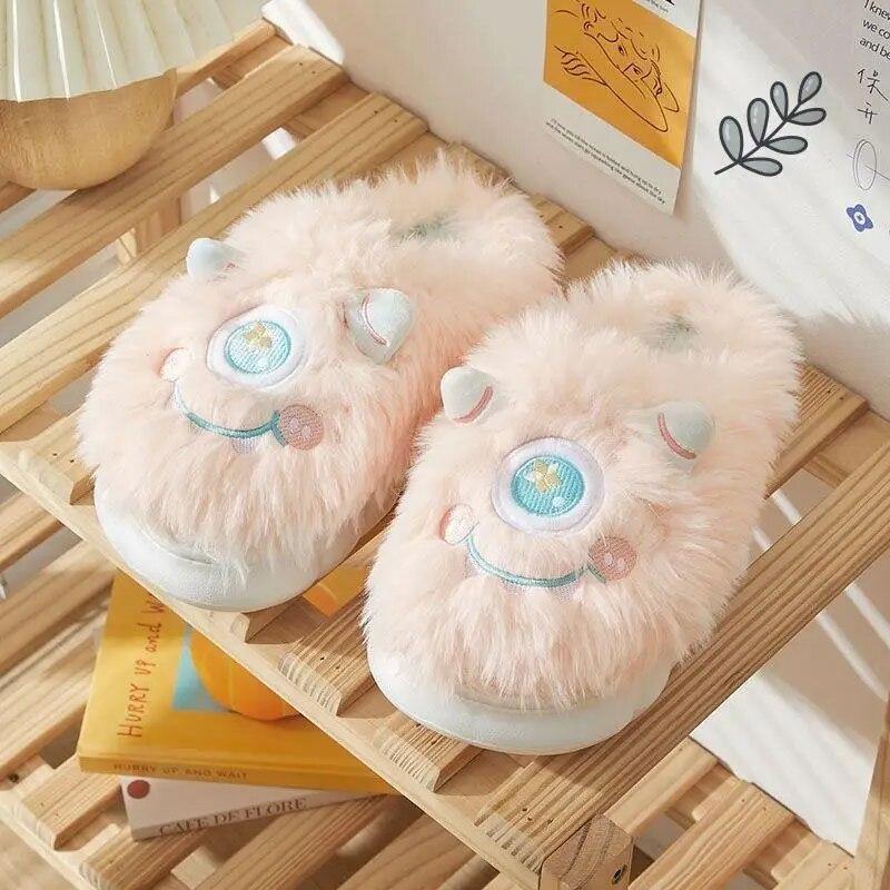 Предупредить милые мультяшные плюшевые тапочки для женщин зимние домашние тапочки с пушистыми животными домашние нечеткие пары повседневные хлопковые тапочки