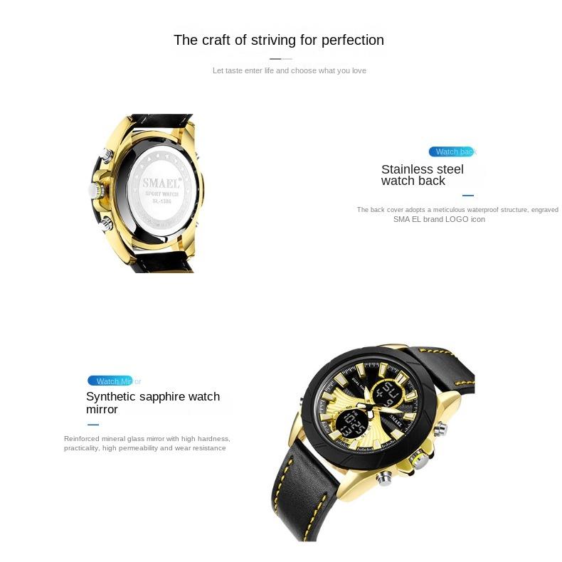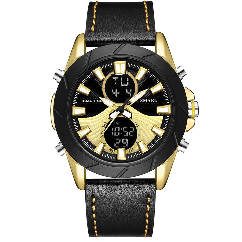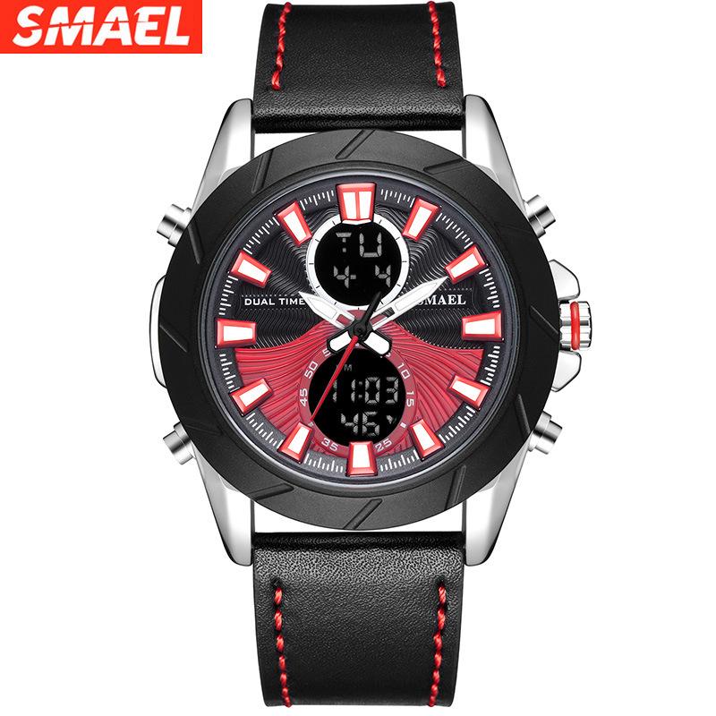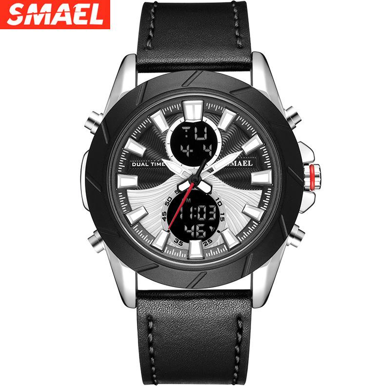 SMAEL мужские электронные часы для отдыха на ремне, водонепроницаемые спортивные часы из сплава с двойным дисплеем, 50 метров