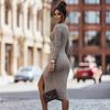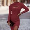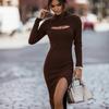 Сексуальное обтягивающее трикотажное длинное платье с вырезами, осенне-зимняя мода, однотонный офисный женский пуловер, тонкие милые платья с длинными рукавами 30513