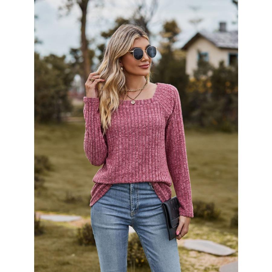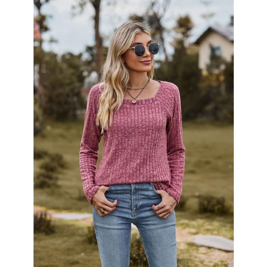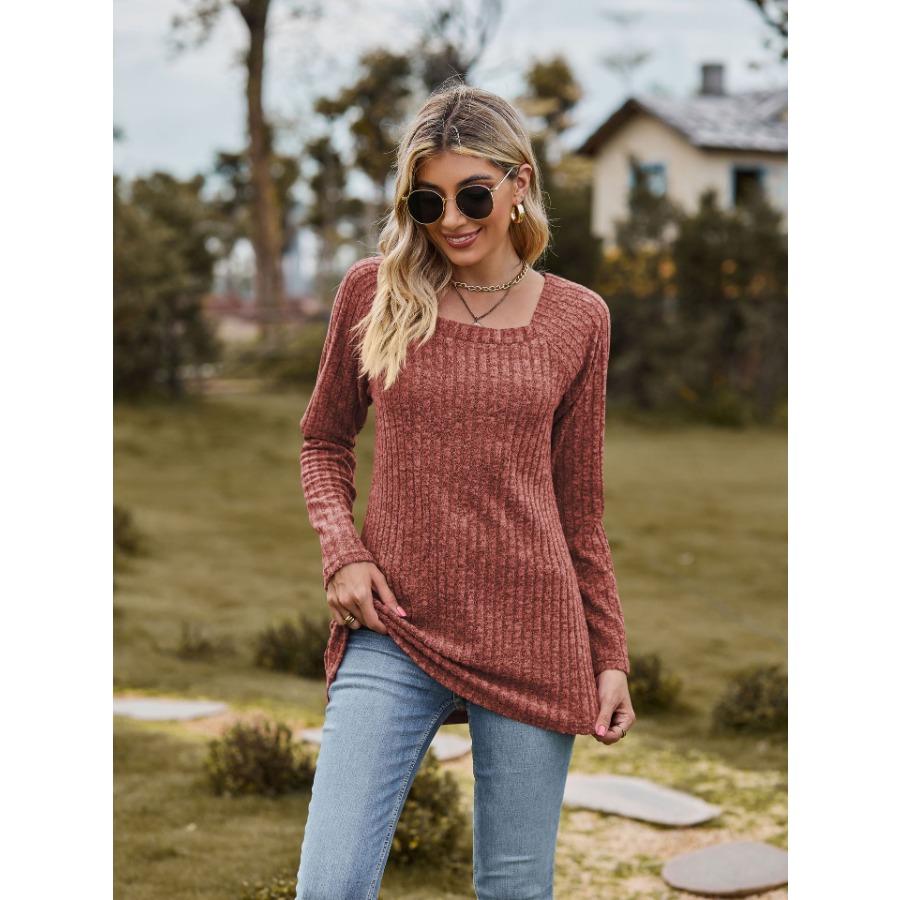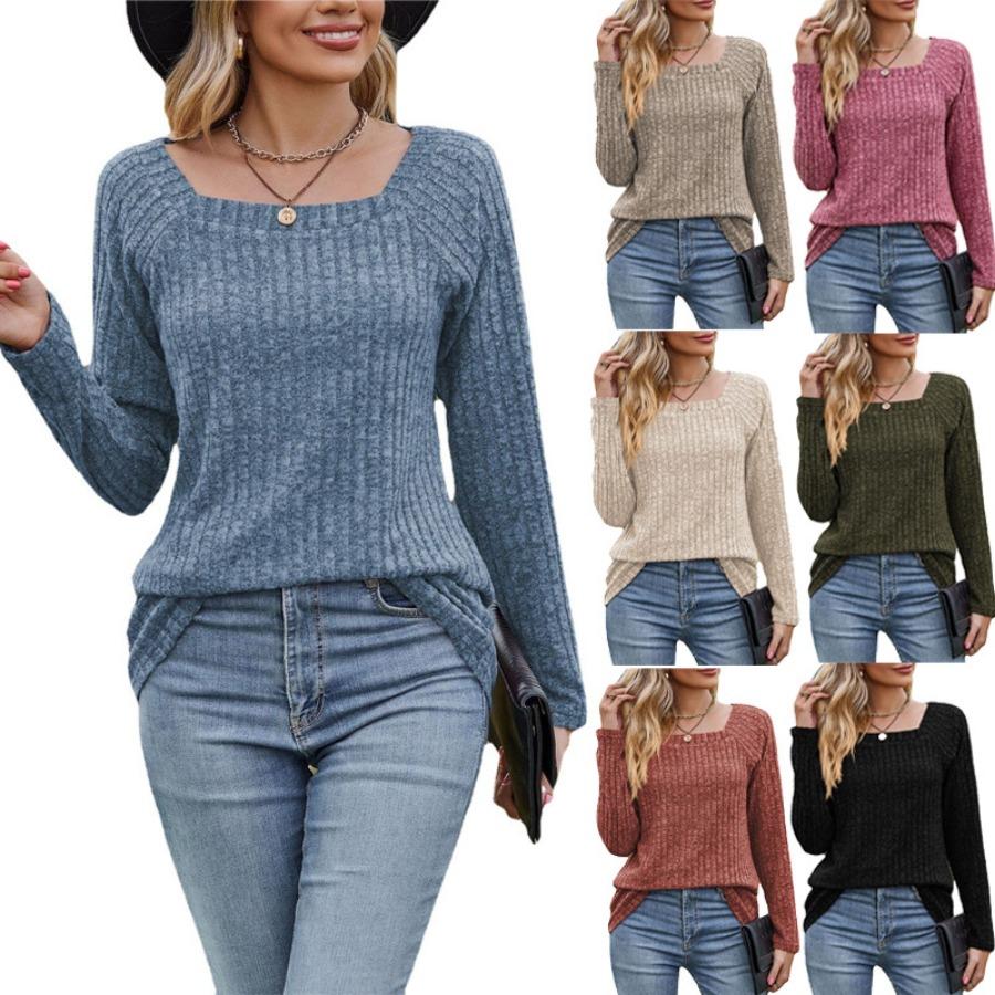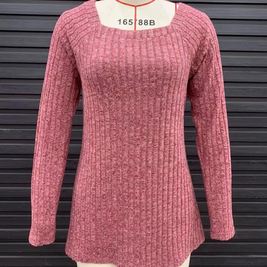 Женская трикотажная эластичная футболка с квадратным вырезом и длинными рукавами