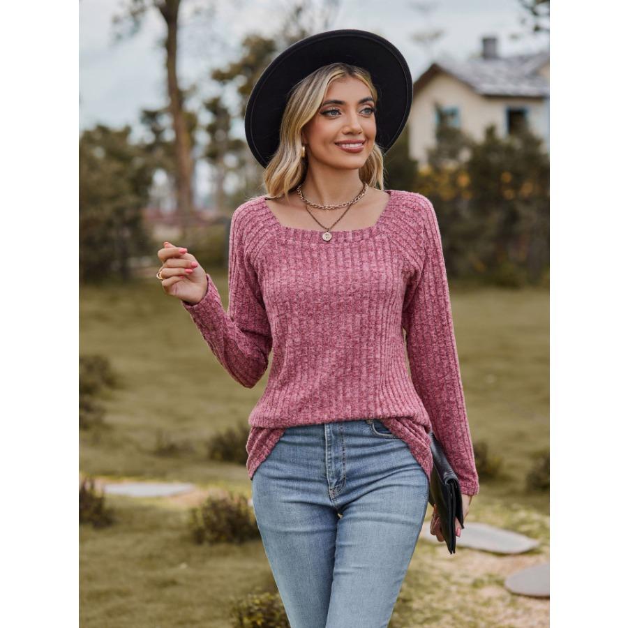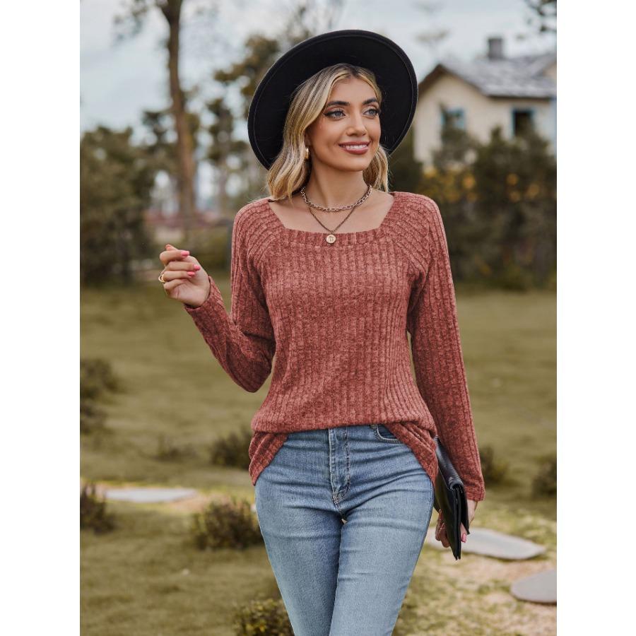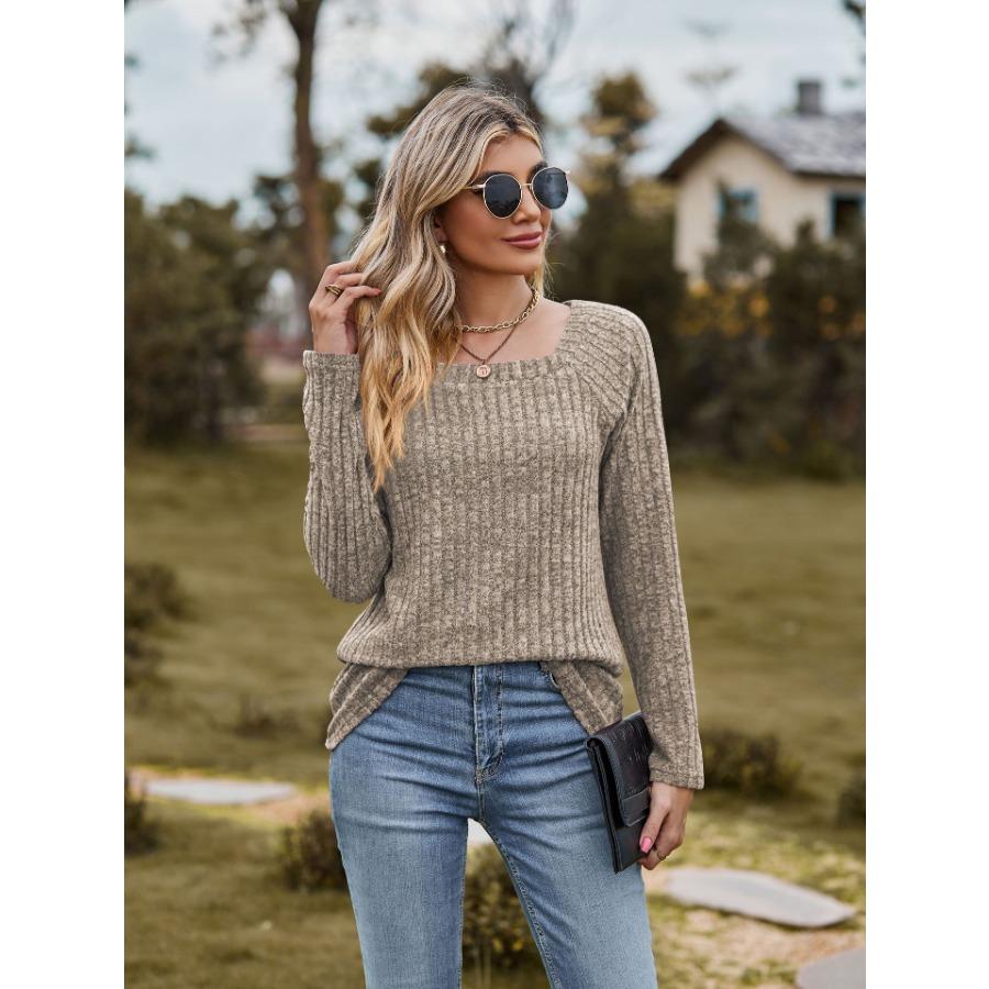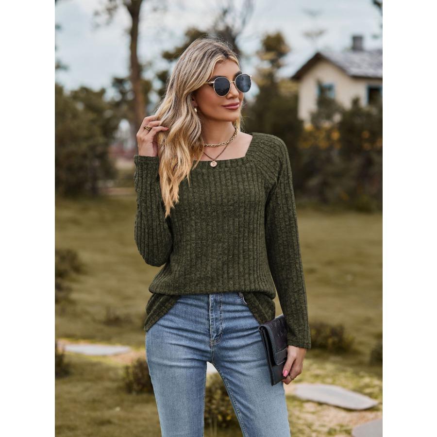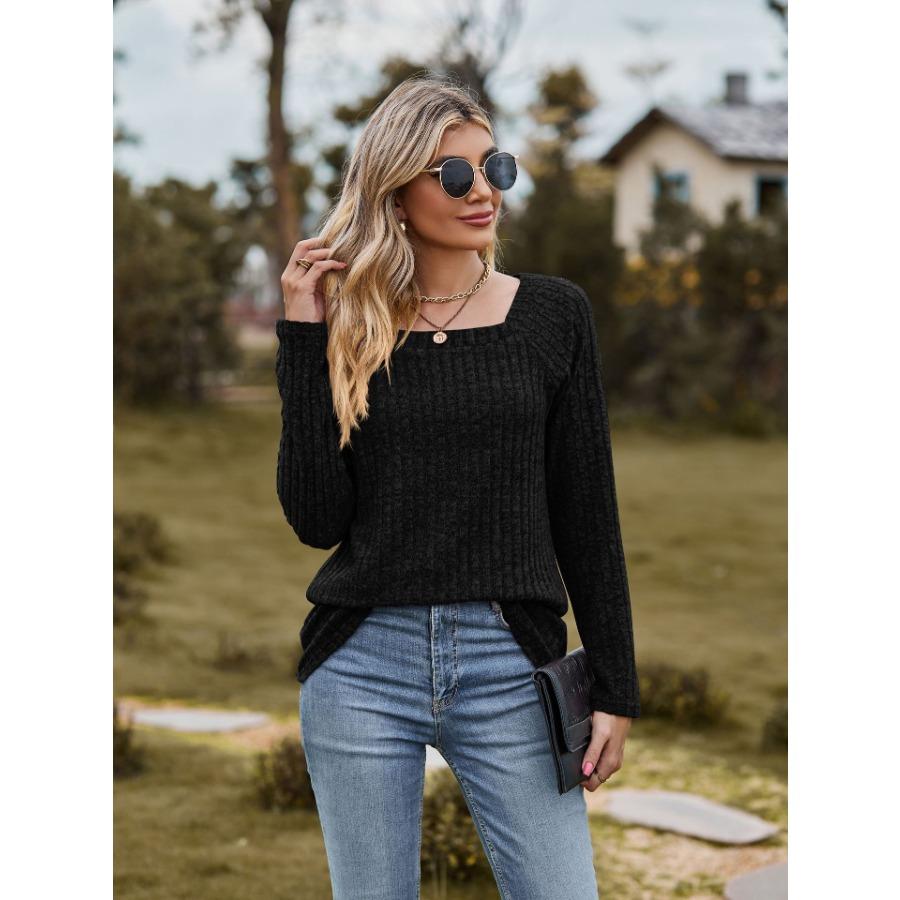 Женская трикотажная эластичная футболка с квадратным вырезом и длинными рукавами