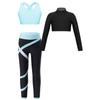 Детский спортивный укороченный топ для танцев и гимнастики для девочек со спортивными леггинсами, комплект из 3 предметов, одежда для тренировок в тренажерном зале, йоге