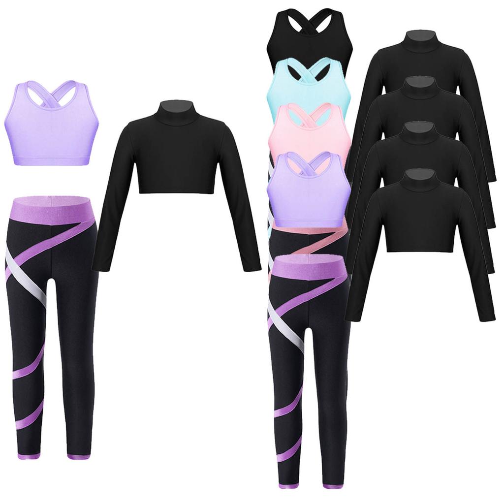 Детский спортивный укороченный топ для танцев и гимнастики для девочек со спортивными леггинсами, комплект из 3 предметов, одежда для тренировок в тренажерном зале, йоге — купить товар онлайн с бесплатной доставкой по всему миру!