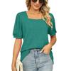 Весенне-летняя футболка, однотонные женские базовые футболки с квадратным вырезом и морщинами, с короткими рукавами