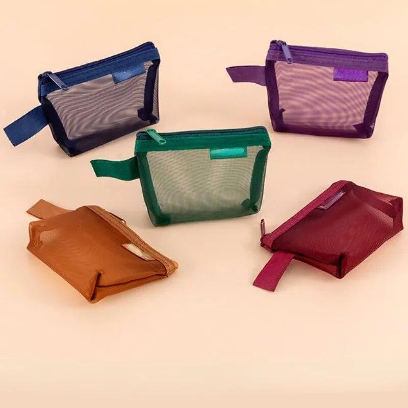 Новый ретро прозрачный сетчатый мешок для монет на молнии ID органайзер для банковских карт чехол портативный ключ наушники кабель для передачи данных зарядное устройство сумка для хранения