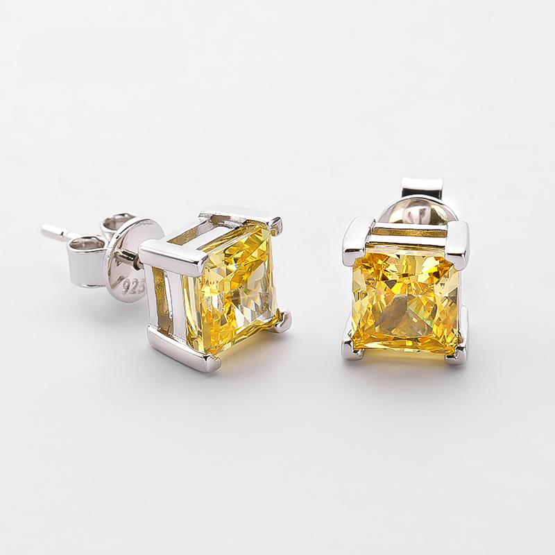 Женские серьги-гвоздики из стерлингового серебра 100% 925 пробы 6*6 мм с желтым аквамарином и высокоуглеродистыми бриллиантами, сверкающие ювелирные изделия