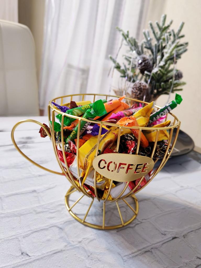 Вазочка для кофейных капсул, конфет, фруктов. Как я ждала эти вазочки! Заказала сразу три для себя и родных! Всем очень понравились! Оригинальный получился подарочек! Каждая вазочка пришла в отдельной крафтовой коробочке и завернутой в пупырку. На выбор представлены 2 цвета, я выбрала золотой! Так как кофе капсульное я не пью, то вазочка идеально подошла к интерьеру с конфетками! Материал - кованое железо, лёгкая, воздушная. Оригинальности придаёт выкованная на железе надпись "Кофе"! Размер 15 х 14 см. Товар и продавца рекомендую всеми ручками👍🏼! Спасибо продавцу и любимому Джум! Всем приятных покупок! Промокод на 5%: 4B06DCP7MJ
