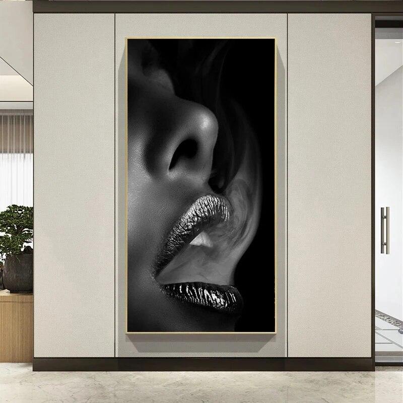 Современное искусство Интерьерная живопись Женщина Сексуальные красные губы Коса Красный дым Холст Картина Плакат и принт для декора стен гостиной Без рамки