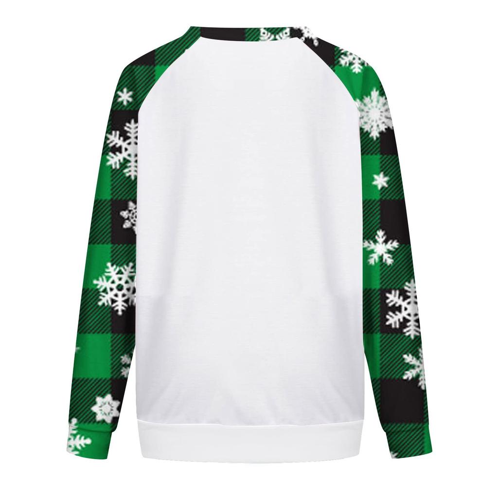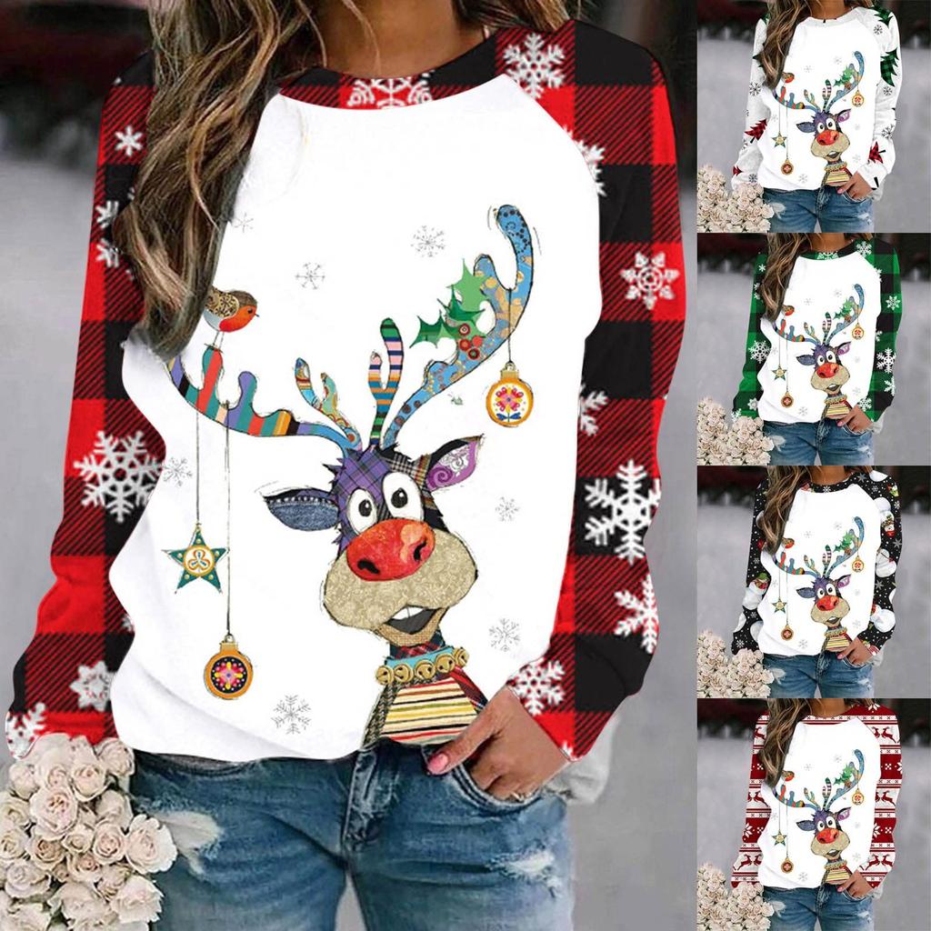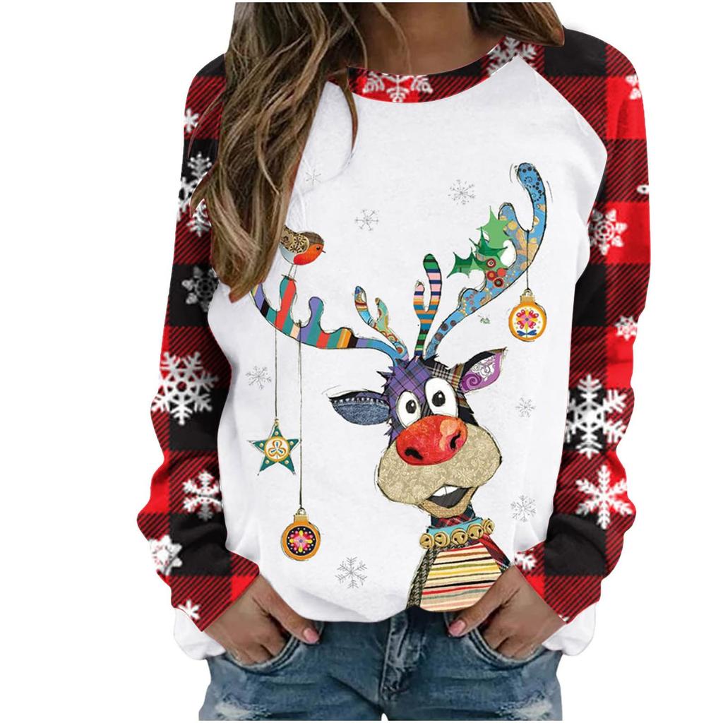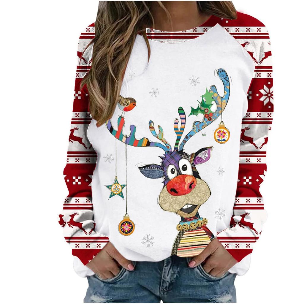 Женский повседневный модный рождественский принт с длинным рукавом и круглым вырезом, пуловер, топ