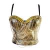 Укороченный топ yushutiff, женский корсет с шипами, топ для ночного клуба, вечеринки, Rave Festival, наряд, бюстье, бюстгальтер пуш-ап, жилеты без рукавов, Золотая одежда