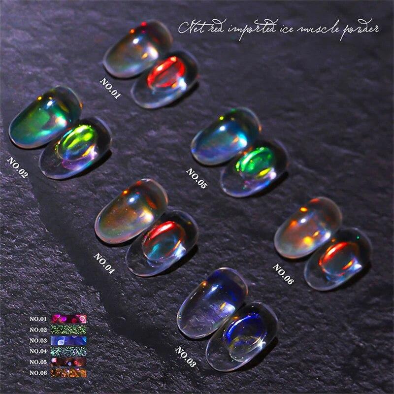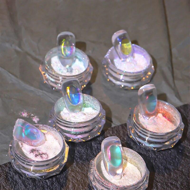 Зеркало Аврора, блестящий порошок для дизайна ногтей, ледяной хамелеон, втирающий пигмент, пыль, блестящий шарм, аксессуары для дизайна ногтей, украшения своими руками
