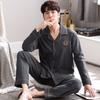 Мужские весенние и осенние хлопковые тонкие пижамы с длинными рукавами плюс хлопковый домашний костюм для полных размеров