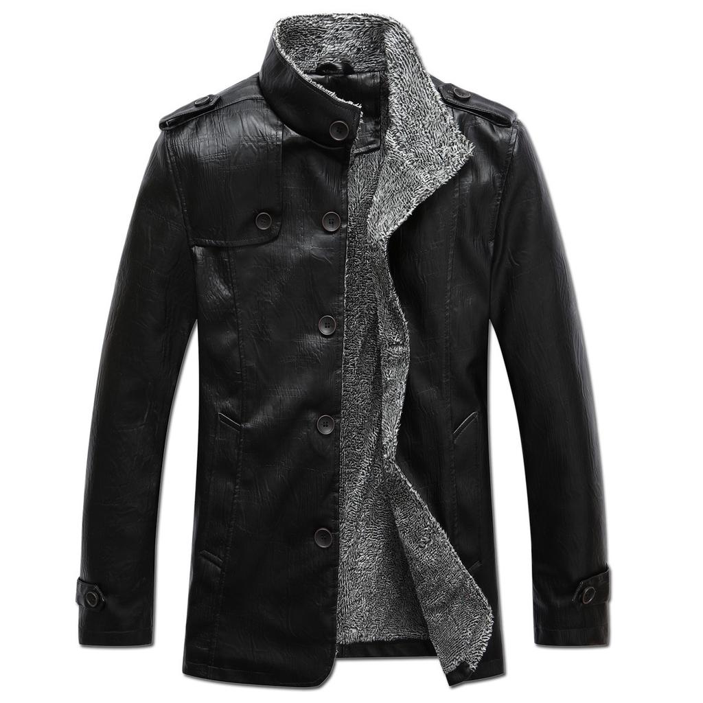 Зимнее пальто мужские куртки из искусственной кожи повседневное воротник-стойка толстая теплая бархатная ветровка пальто