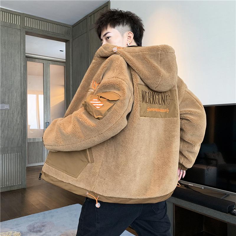 Зима, Мужской, Мех, Флис, Мода, Пальто, Пальто, Мужчины, Отворот, Тепло, Пух, Молния, С капюшоном, Куртка, Верхняя одежда, Большие размеры