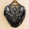 Женская шаль 1920-х годов, расшитая блестками, с кисточками, жемчужной бахромой из бисера, прозрачная сетчатая накидка, болеро, накидка-накидка в стиле Гэтсби