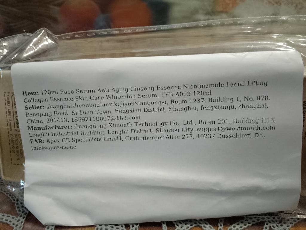 Сыворотка для лица с экстрактом женьшеня, 120 мл. Внутри бутылочки натуральный корень. В составе также гиалуроновая кислота, ниацинамид, экстракт центеллы азиатской, пептиды, аргинин. У сыворотки приятный аромат. Экстракт женьшеня разглаживает морщинки, улучшает микроциркуляцию крови, устраняет возрастные изменения. Остальные ингредиенты питают, увлажняют, тонизируют кожу, повышают эластичность и упругость, подтягивают овал лица ( лифтинг эффект), слегка отбеливают. Сыворотка подходит для лица, кожи вокруг глаз и зоны декольте. Небольшое количество сыворотки наносим на очищенную кожу и массирующими движениями распределяем до полного впитывания. В результате здоровый и сияющий цвет лица. P.S многие пишут, что сыворотка приходит в мятой коробочке, но это не самое страшное, хуже, когда сыворотка протекает по тем или иным причинам. Мне повезло, всё пришло в целости и сохранности, за что продавцу большое спасибо.