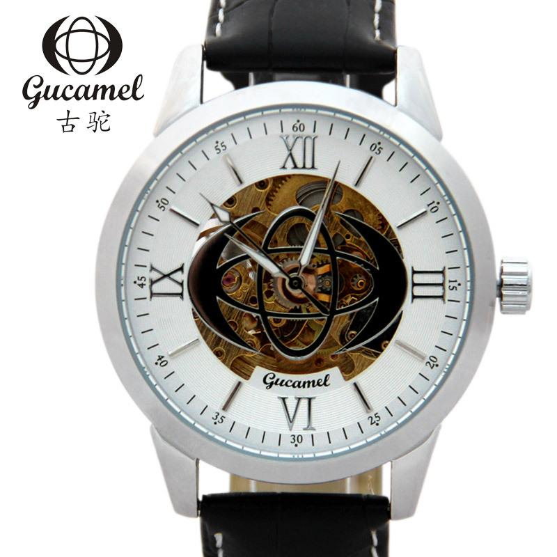 GUCAMEL Мужские механические часы с римскими цифрами Перфорированные механические часы Мужские механические часы