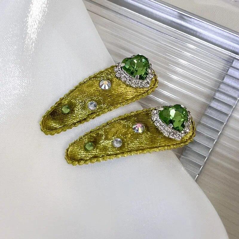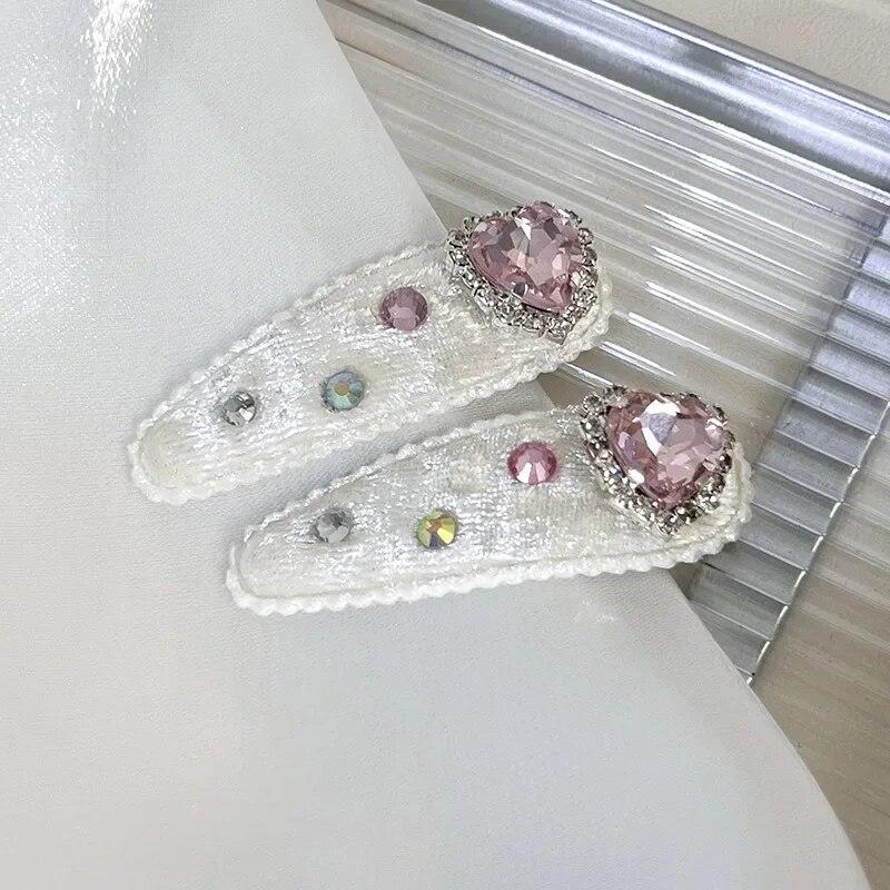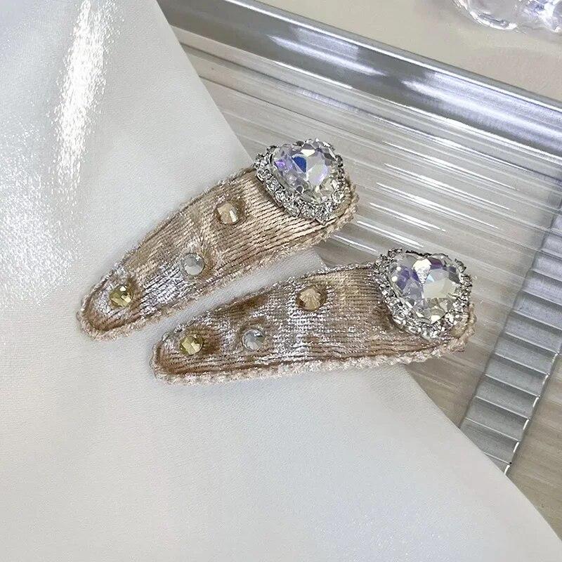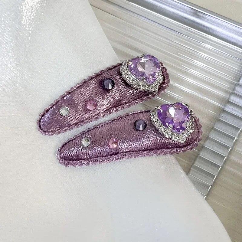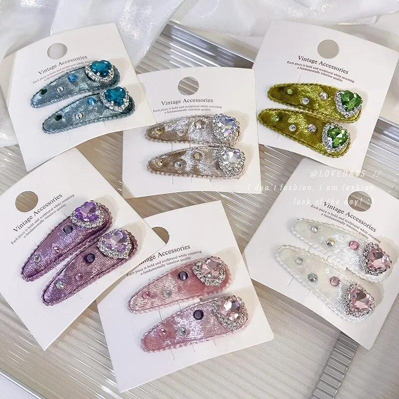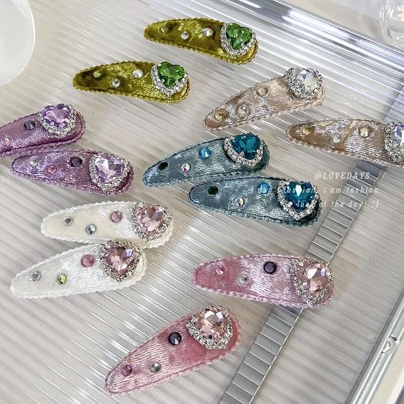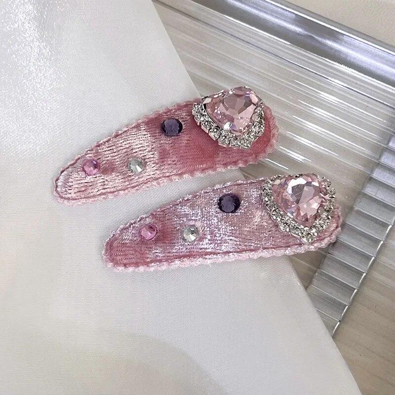 2 шт./компл., милая заколка для волос для девочек, модная заколка для волос Y2K Love со стразами для детей, бархатная заколка с челкой для девочек, боковой зажим, детские головные уборы